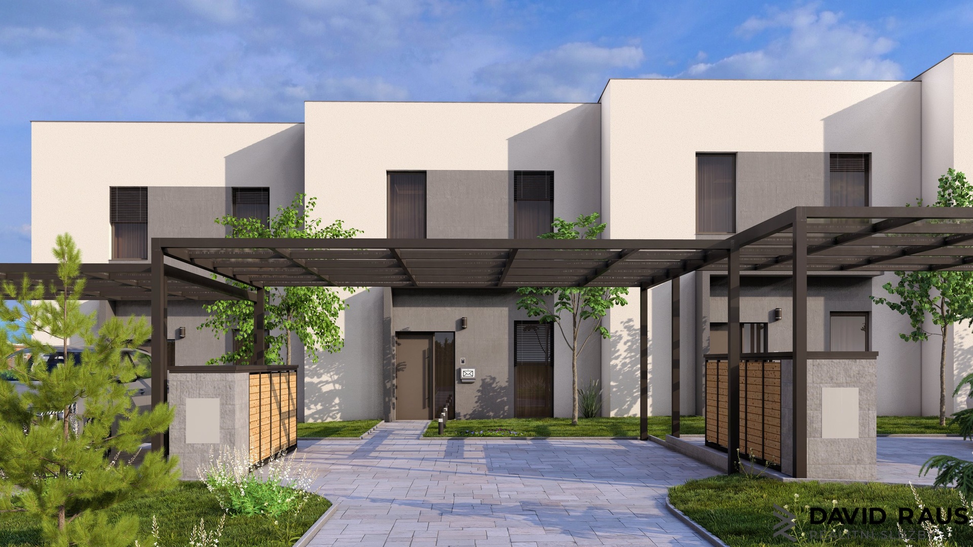 Nabízím k prodeji rodinný dům (č.3) o dispozici 5+kk, se zastřešeným parkovacím stáním na vlastním pozemku (288 m²), ve městě Rajhrad.