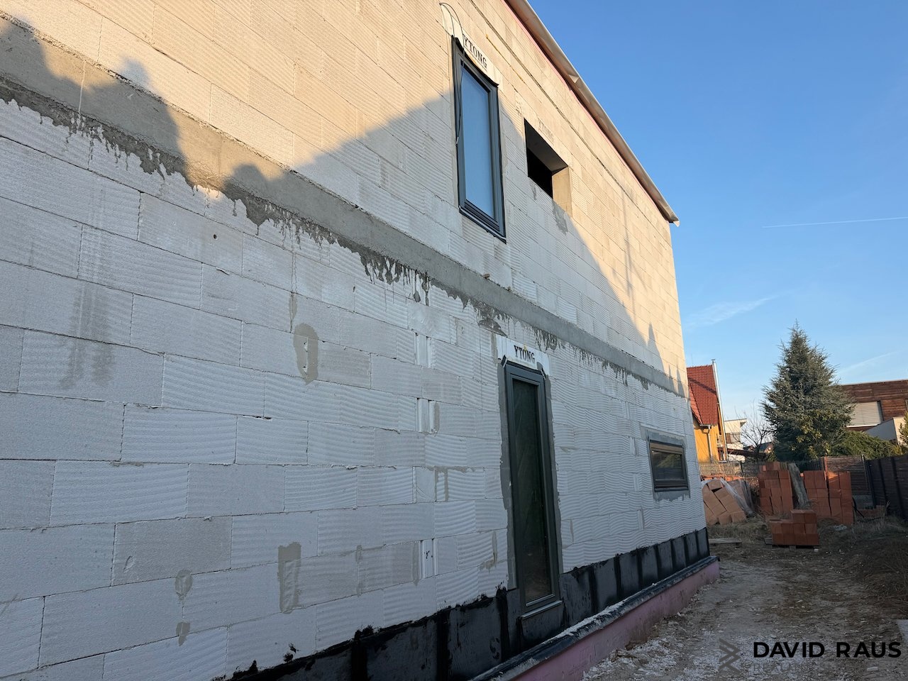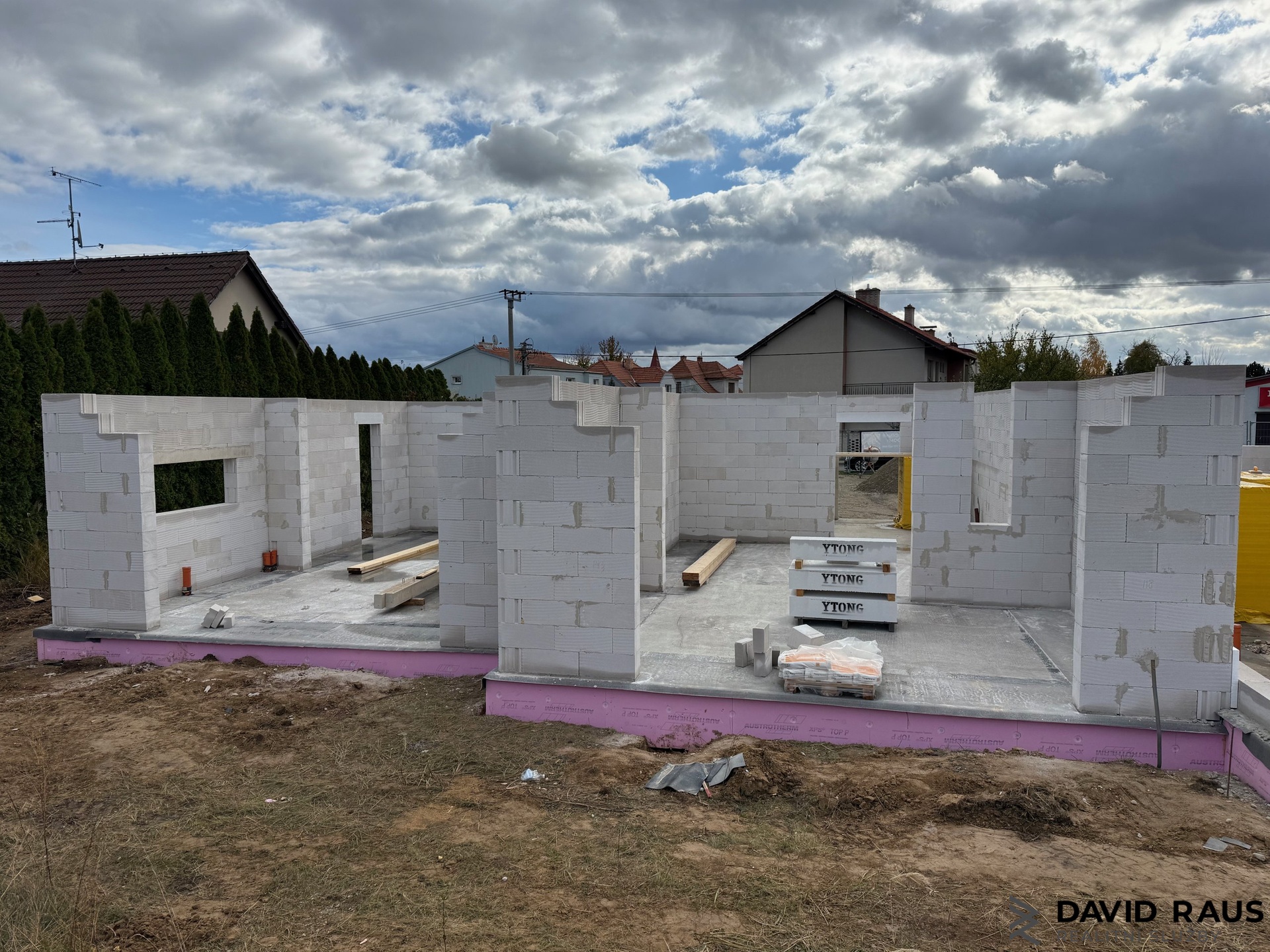 Rodinný dům o podlahové ploše 175 m² je ve fázi výstavby a je jeden ze čtyř nízkoenergetických rodinných domů na ulici Syrovická, v Rajhradě.