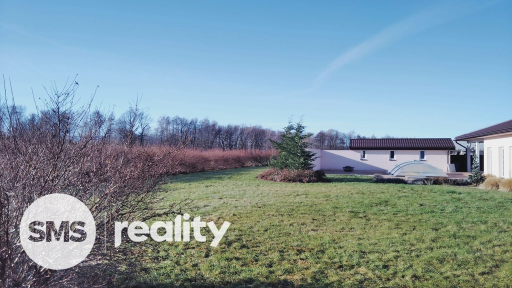 K domu náleží také krásná velká zastřešená terasa o ploše 83 m² , ideální pro relaxaci nebo rodinné oslavy, a vyhřívaný krytý bazén, který ocení nejen děti, ale i dospělí. Na pozemku se nachází zahradní domek o velikosti 24 m², který je celkově podsklepený, a také zahrada s výběhem pro psy a kotcem.