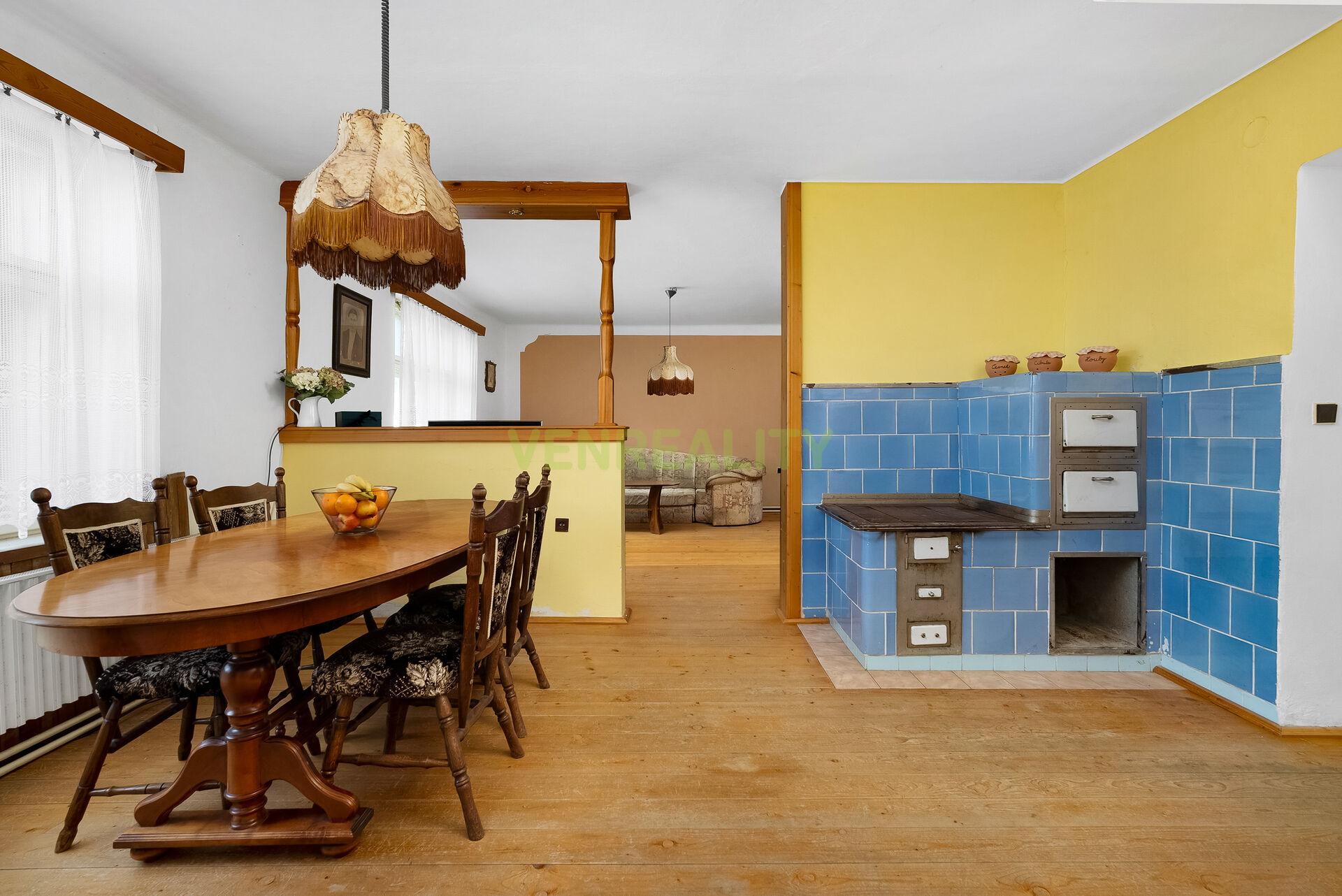 Dispozice domu: 5+1 s příslušenstvím, v přízemí obývací pokoj s krbem, samostatná jídelna se vstupním schodištěm do podkroví, kuchyně, ložnice, koupelna, samostatná toaleta, vstupní chodba a vnitřní chodba domu, v podkroví dvě ložnice.