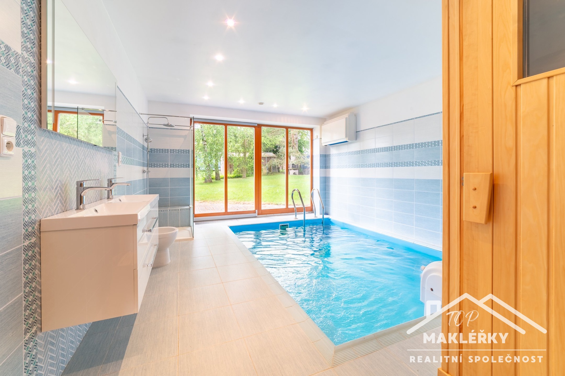 Dominantním prostorem nemovitosti je velkorysý obývací pokoj s kuchyňským koutem, který se i díky krbu stává přirozeným centrem společného života. K opravdovému odpočinku přispívá také wellness zóna se saunou z cedrového dřeva, bazénem s protiproudem a sprchou. Bytovou část dále tvoří ložnice a rovněž komora, kterou lze přizpůsobit a proměnit v dětský pokoj. Dílna a druhá komora jsou přístupné samostatně, a to prostřednictvím vrat s elektrickým pohonem nebo dveřmi v zadní části domu. Až pro dvě auta je k dispozici kryté parkovací stání.