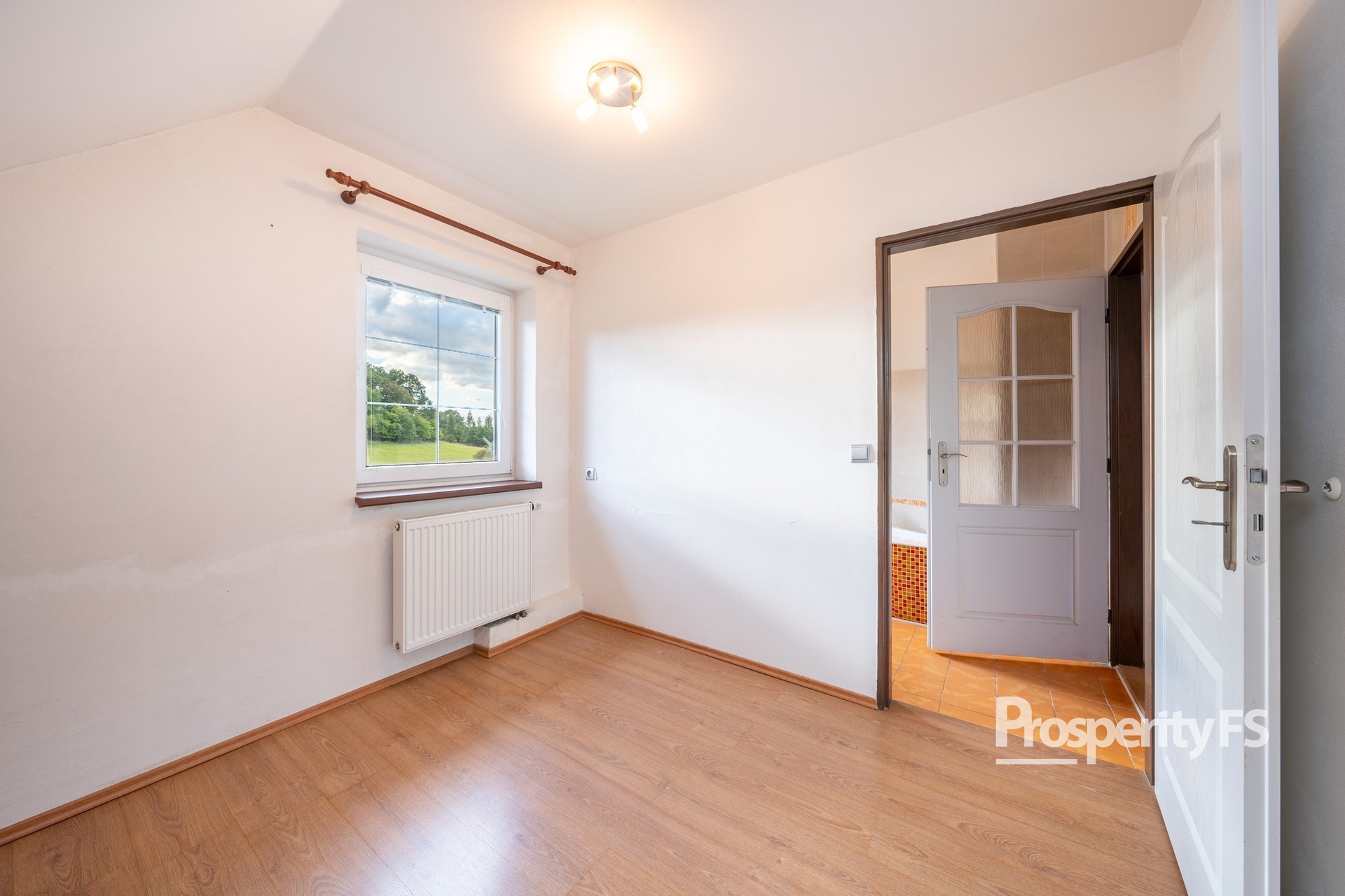 V patře jsou tři ložnice, koupelna s vanou a praktická komora. Nad obytnou částí je půda, kterou lze využít jako úložný prostor.