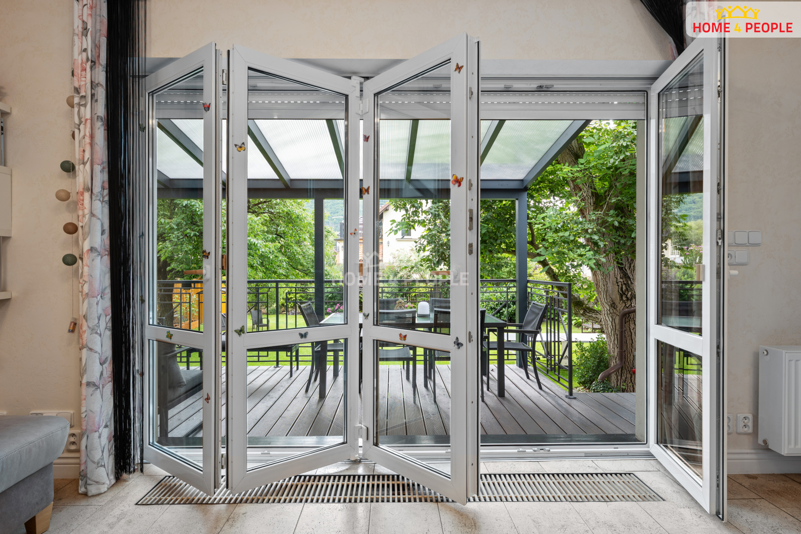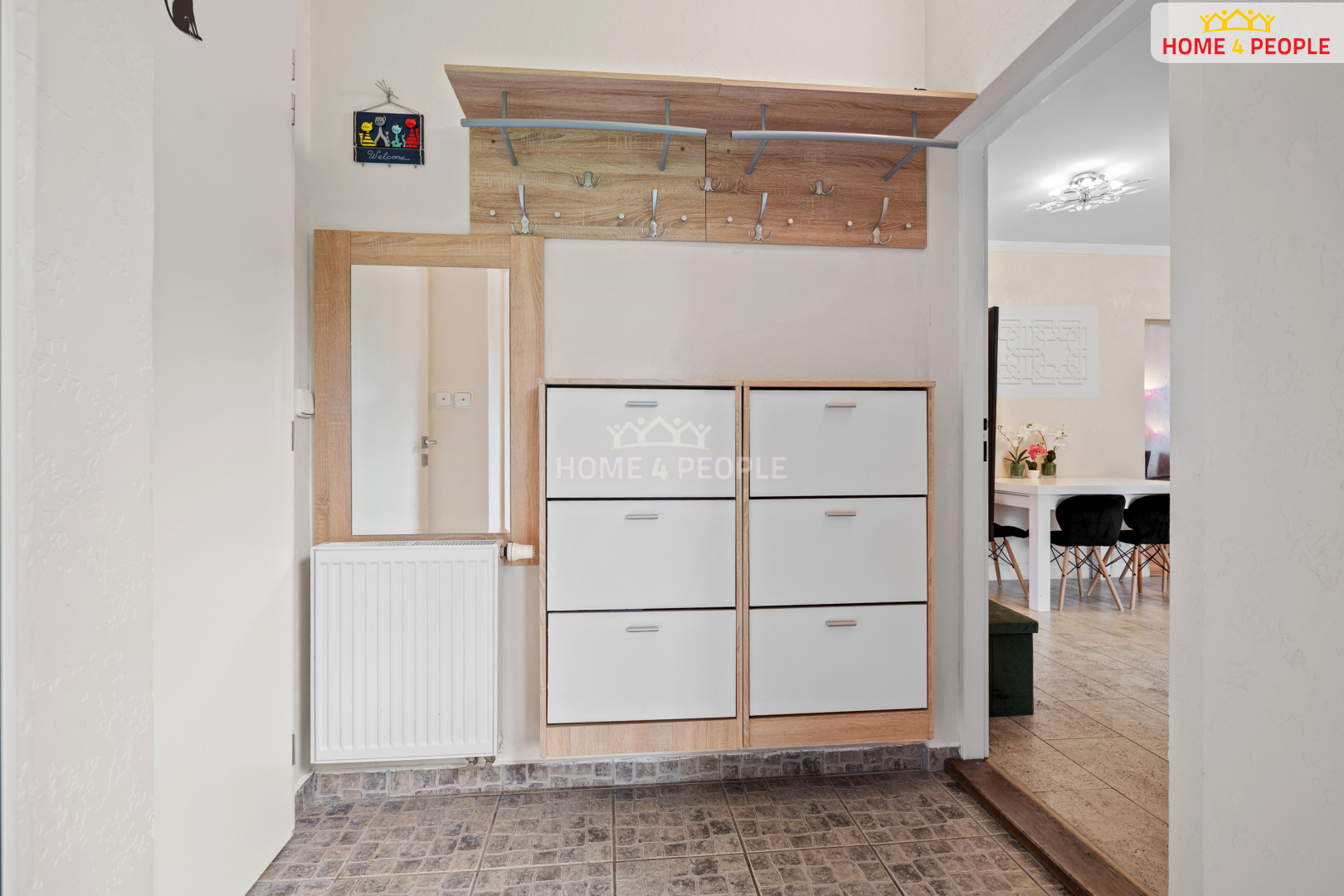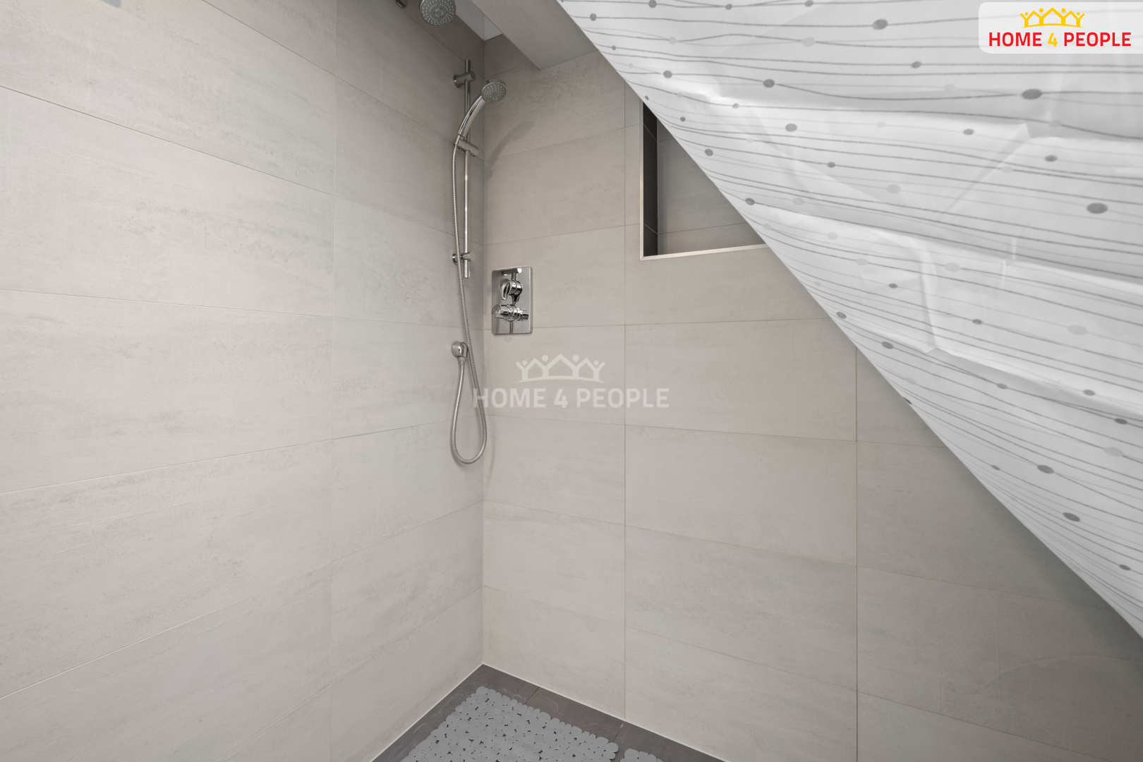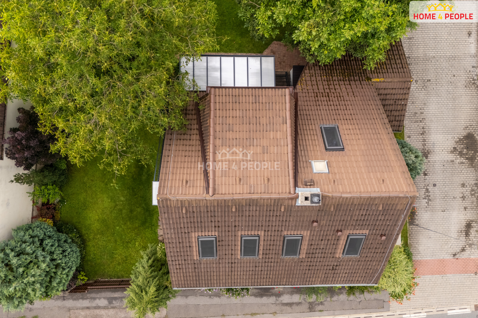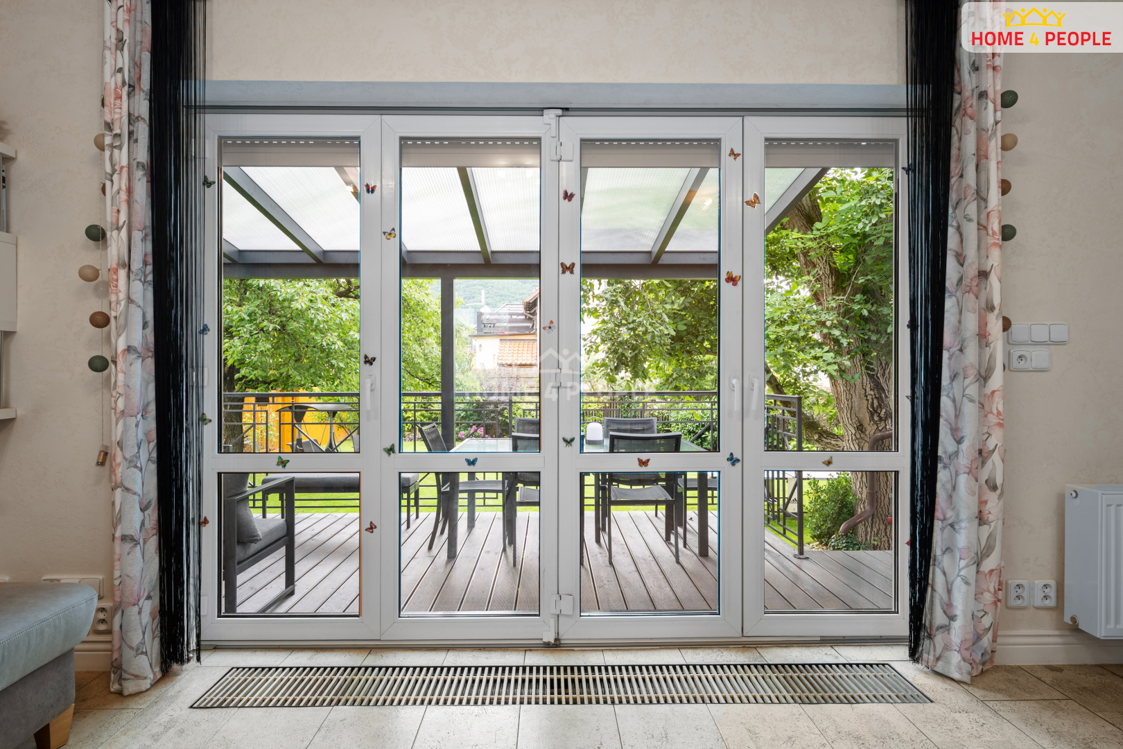 V přízemí se nachází hlavní bytová jednotka v dispozici 3+1, 64 m², s mimořádně pěkným výhledem i vstupem dělenými francouzkými okny na hliníkovou 25 m² pergolu, předokenní roletou a podlahovým konvektorem. Posezení, které si užijete značnou část roku, ať teple i chladnějším období s něčím na zahřátí. Za vstupními dveřmi se nachází zádveří a možnost i pro vstup do podkroví. Vzhledná kuchyně se spotřebiči, v pokojích protihluková okna s trojskly, klimatizace, koupelna s vyhřívanou podlahou, vanou i sprchovým koutem a WC bidetem 2v1. V chodbě plynový kondenzační kotel Vailant ecoTecpro 2018.