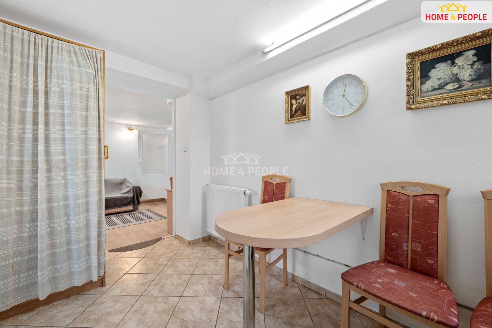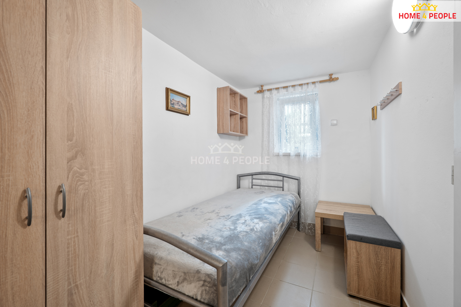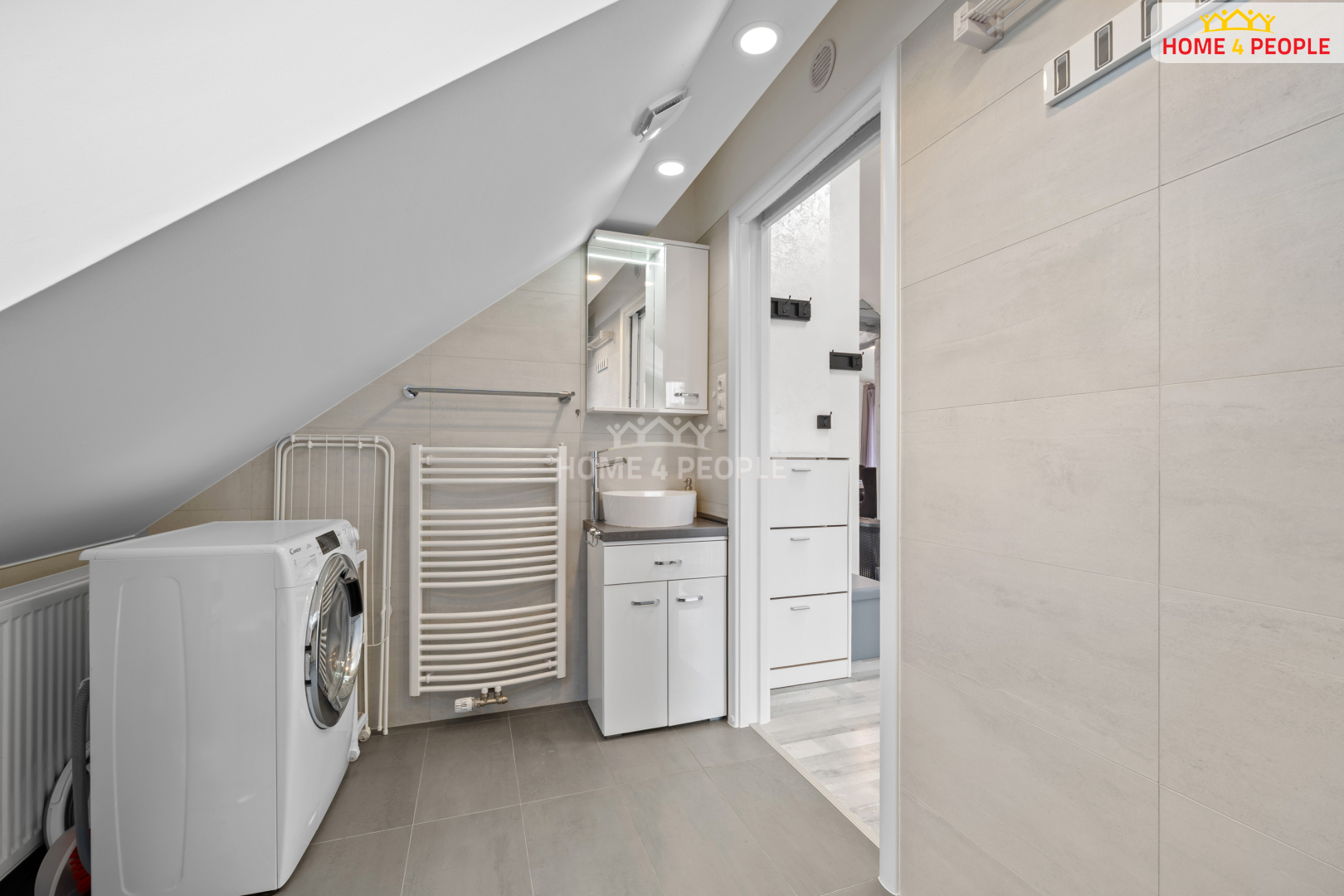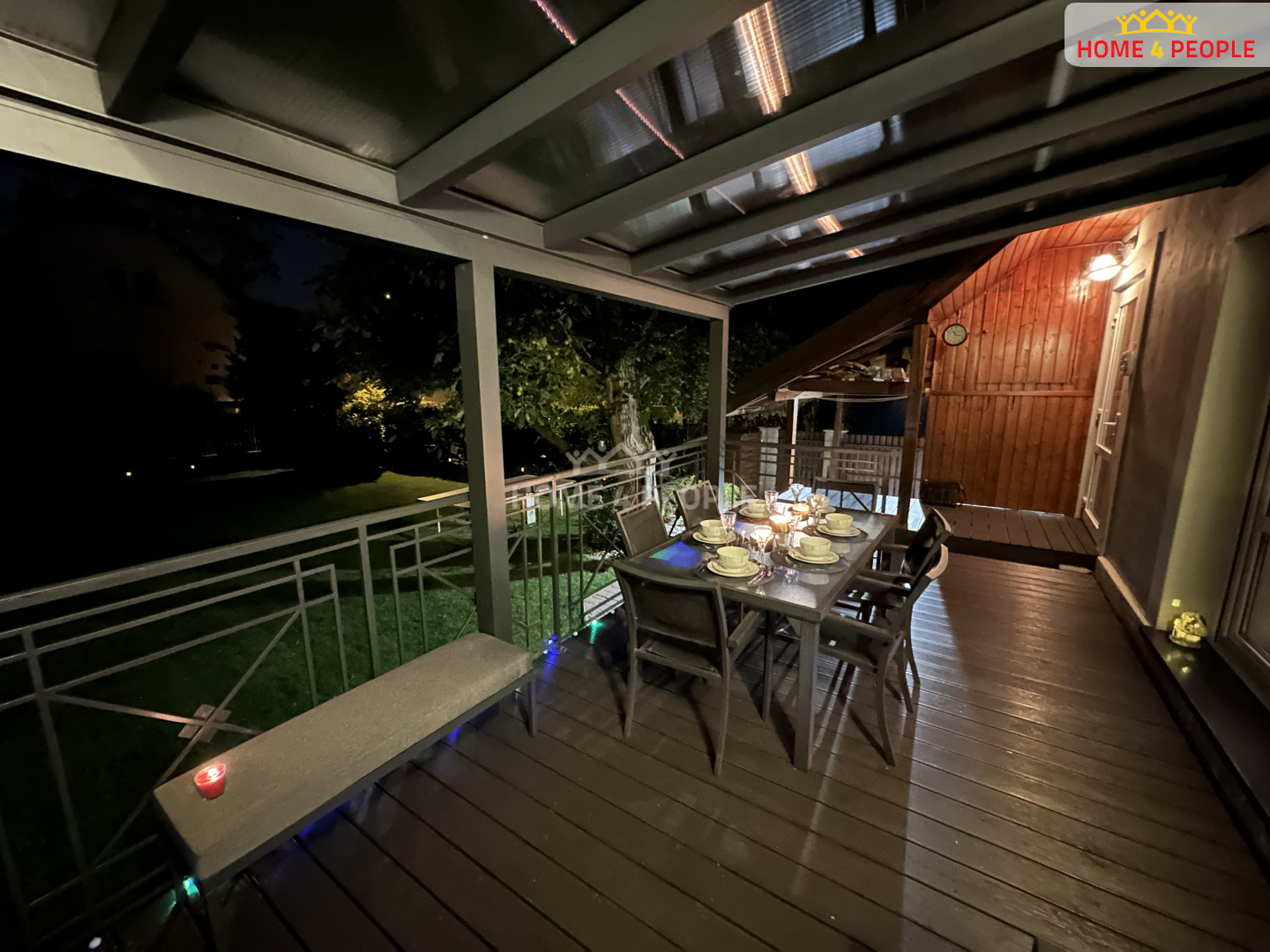 V přízemí se nachází hlavní bytová jednotka v dispozici 3+1, 64 m², s mimořádně pěkným výhledem i vstupem dělenými francouzkými okny na hliníkovou 25 m² pergolu, předokenní roletou a podlahovým konvektorem. Posezení, které si užijete značnou část roku, ať teple i chladnějším období s něčím na zahřátí. Za vstupními dveřmi se nachází zádveří a možnost i pro vstup do podkroví. Vzhledná kuchyně se spotřebiči, v pokojích protihluková okna s trojskly, klimatizace, koupelna s vyhřívanou podlahou, vanou i sprchovým koutem a WC bidetem 2v1. V chodbě plynový kondenzační kotel Vailant ecoTecpro 2018.