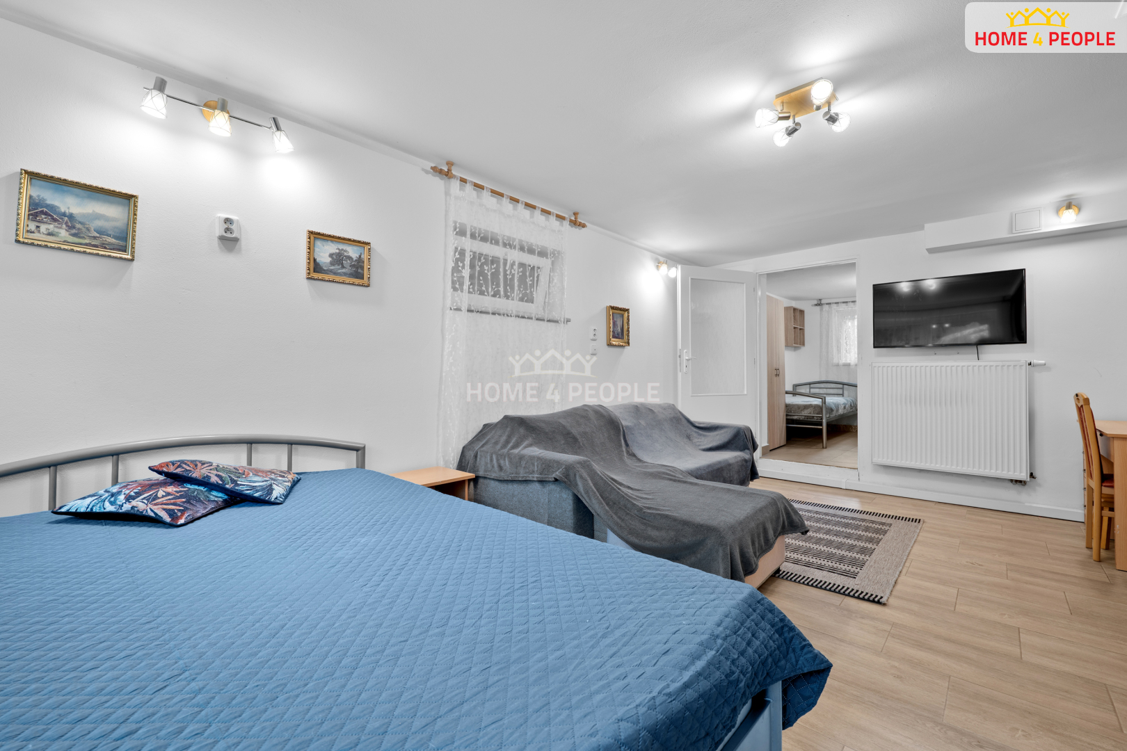 V suterénu se nalézá prostor v dispozici 2+1, který má vlastní vstup a obsahuje i koupelnu se sprchou a WC, kuchyni i technickou místnost. Jsou zde samostatné měřáky elektřiny i vody a může sloužit k mnoha účelům - klubovna, kuřárna, dílna...