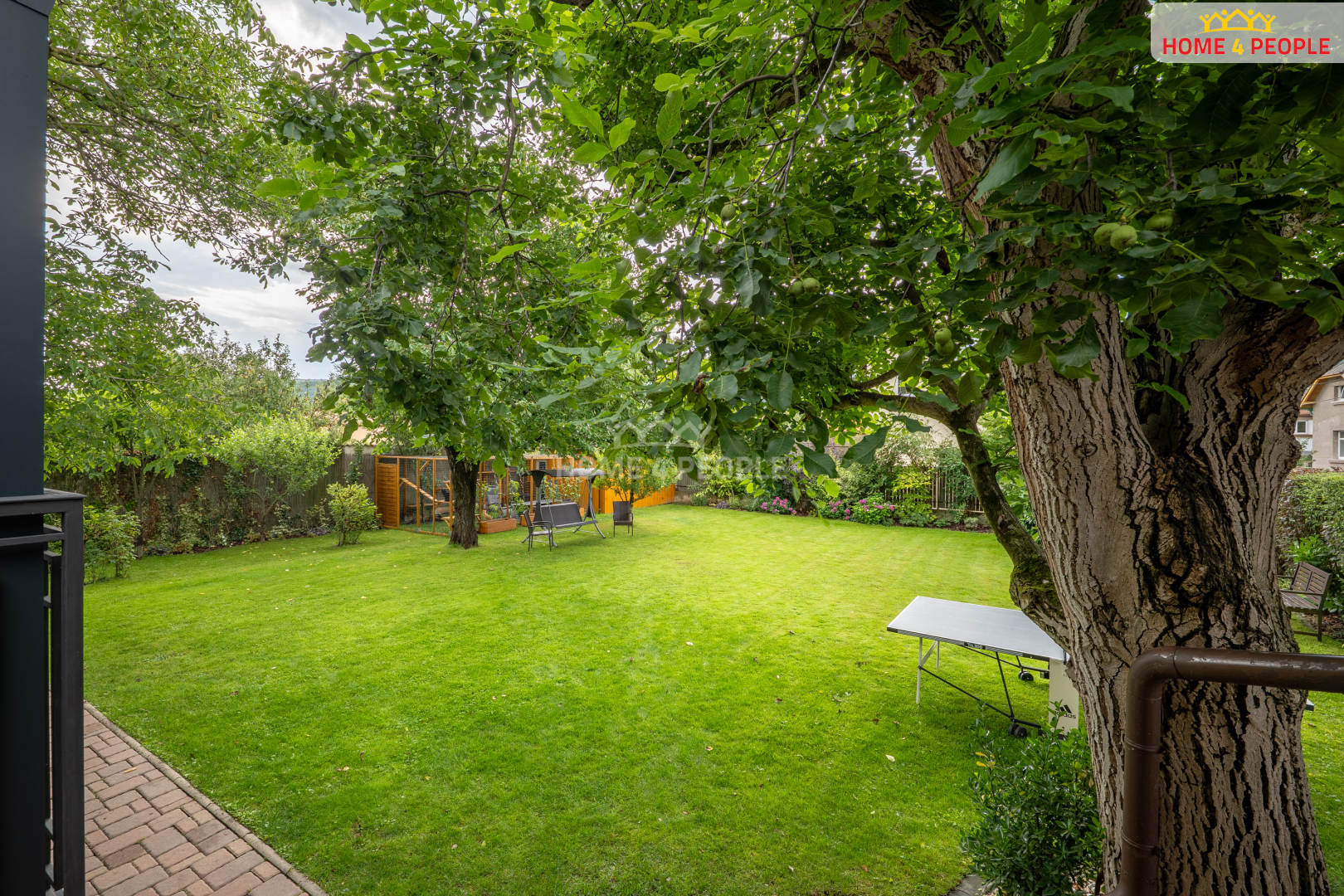 Zahrada pro odpočinek i pěstování, okrasné keře, 10 vzrostlých stromů (ořechy, jablka..), kopaná 8 m studna se 4 výstupy, voliéra pro zvířátka se zatepleným domkem, úložným prostorem pod terasou, dílna a kůlna na úschovu věcí.