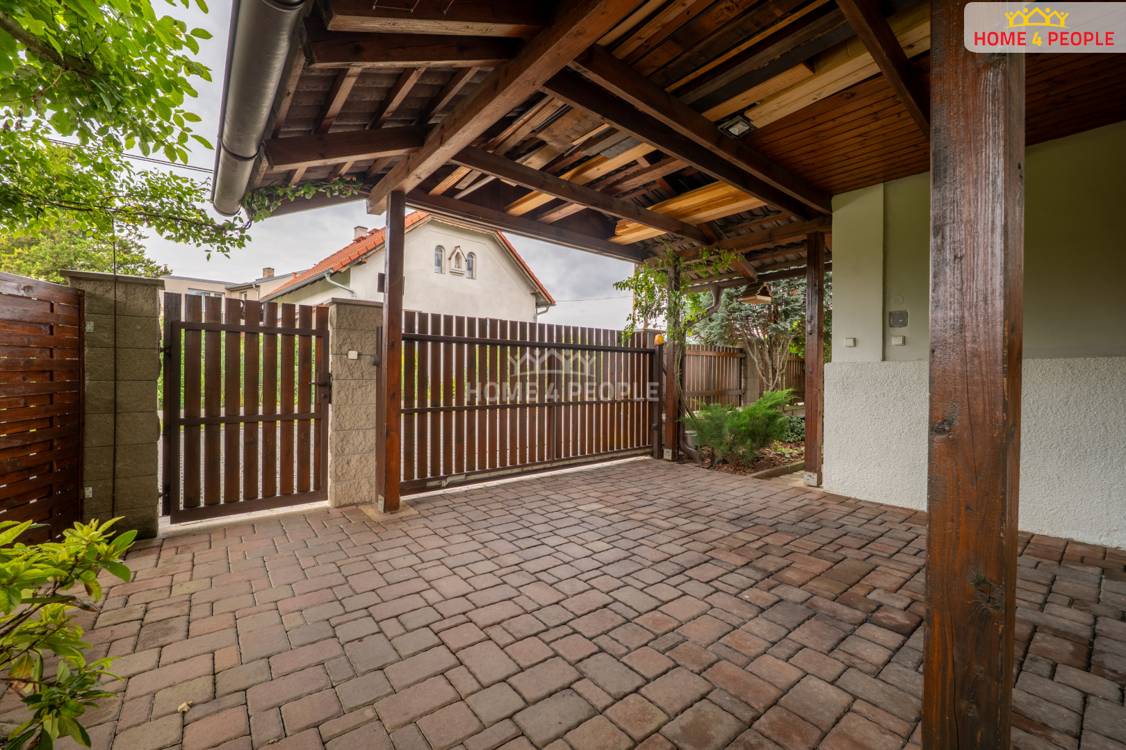 Příjezd na pozemek je možný vjezdovou bránou z ulice Hálkova i Pražské, zahrnuje i kryté stání a celkově se vejde až 6 vozů. Parkování je možné i před domem.
