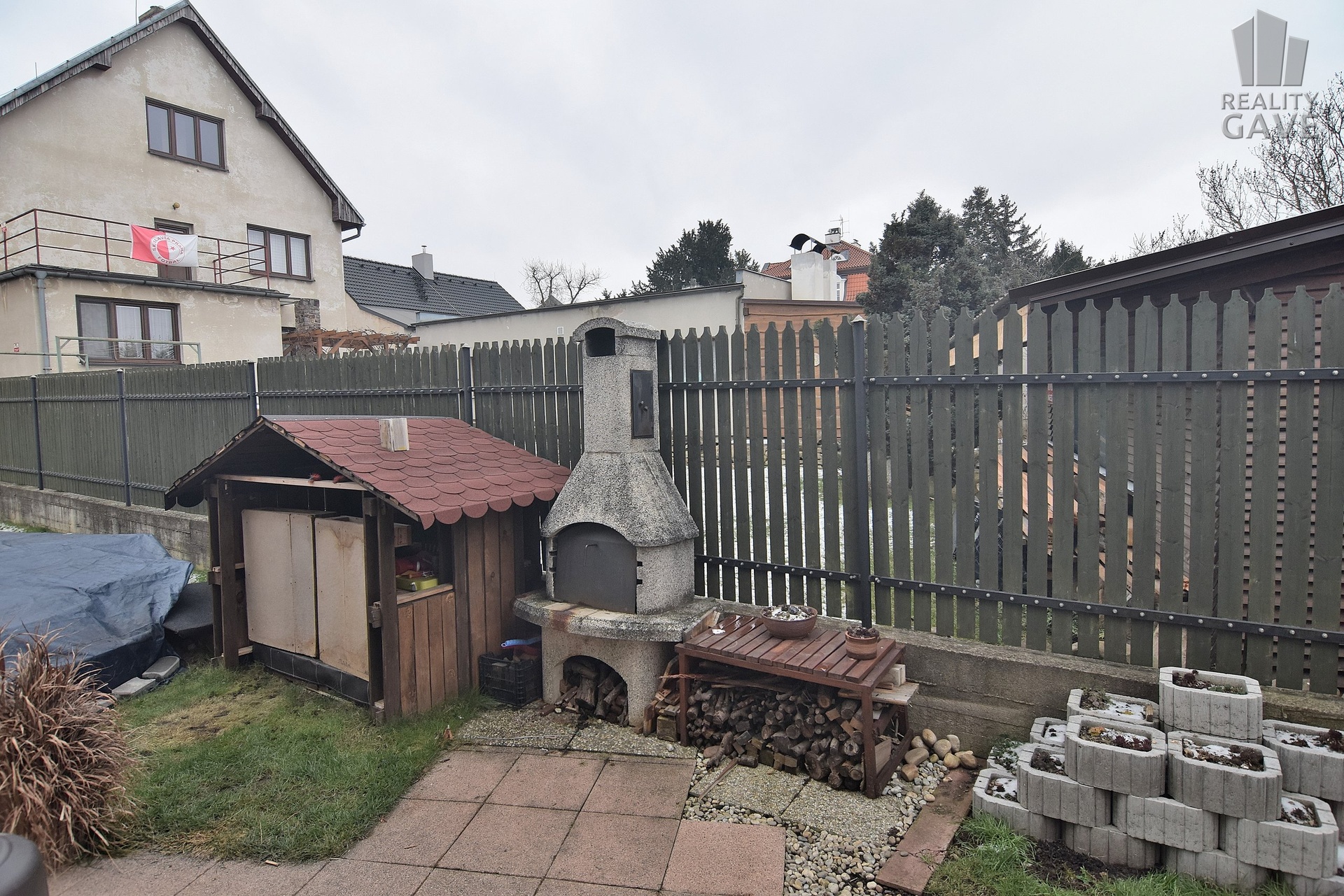 Zahrada: Není veliká a je spíše pro relaxaci než dřinu. Perfektní rozměr pro terasu, gril a vířivku. Na pozemku zahrady je dále umístěna plechová buňka pro potřeby údržby zahrady a domu.