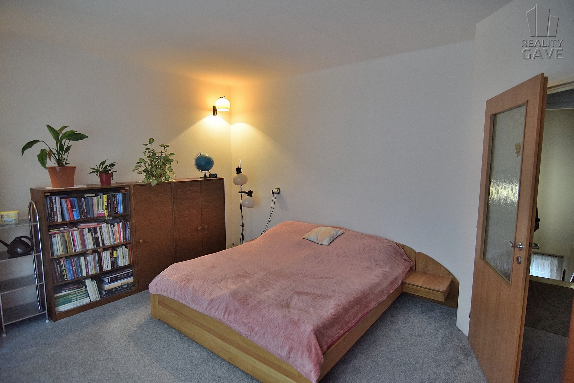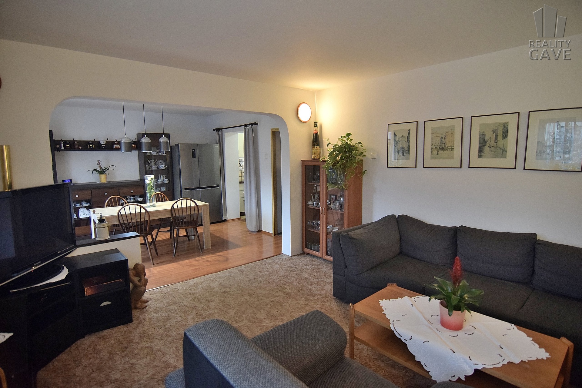 Původní garáž v přízemí je aktuálně využívána jako obytná místnost, prostor lze však snadno uvést do původního stavu.