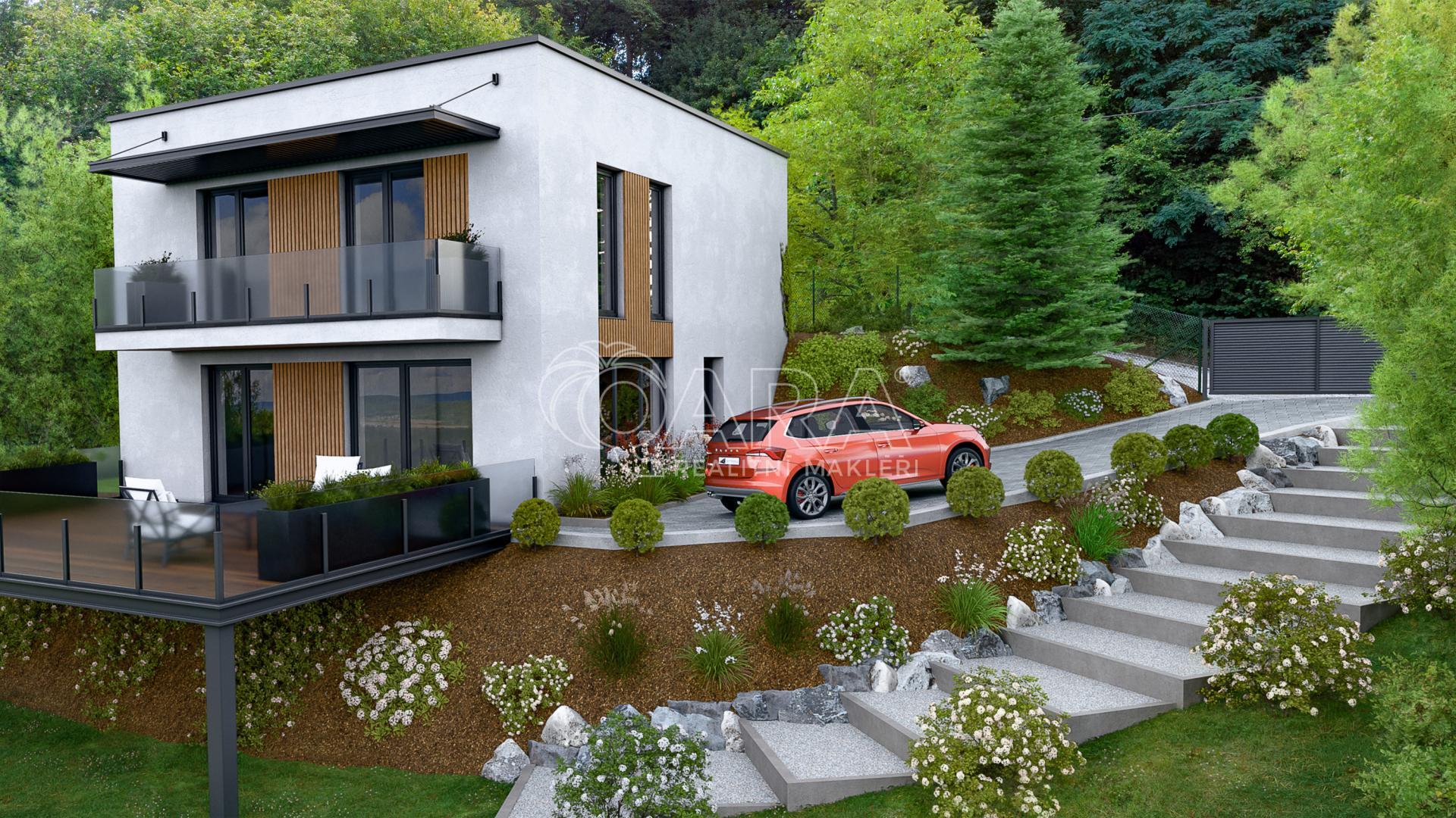 Jeho svažitý terén ocení především ti, kteří využijí tento potenciál pro výjimečnou stavbu s nevšedním výhledem na malebné údolí řeky Berounky a např. k realizaci kaskádové zahrady s jezírky a vodopádem či rybníčkem. Z pozemku lze dokonce spatřit i hrad Karlštejn.