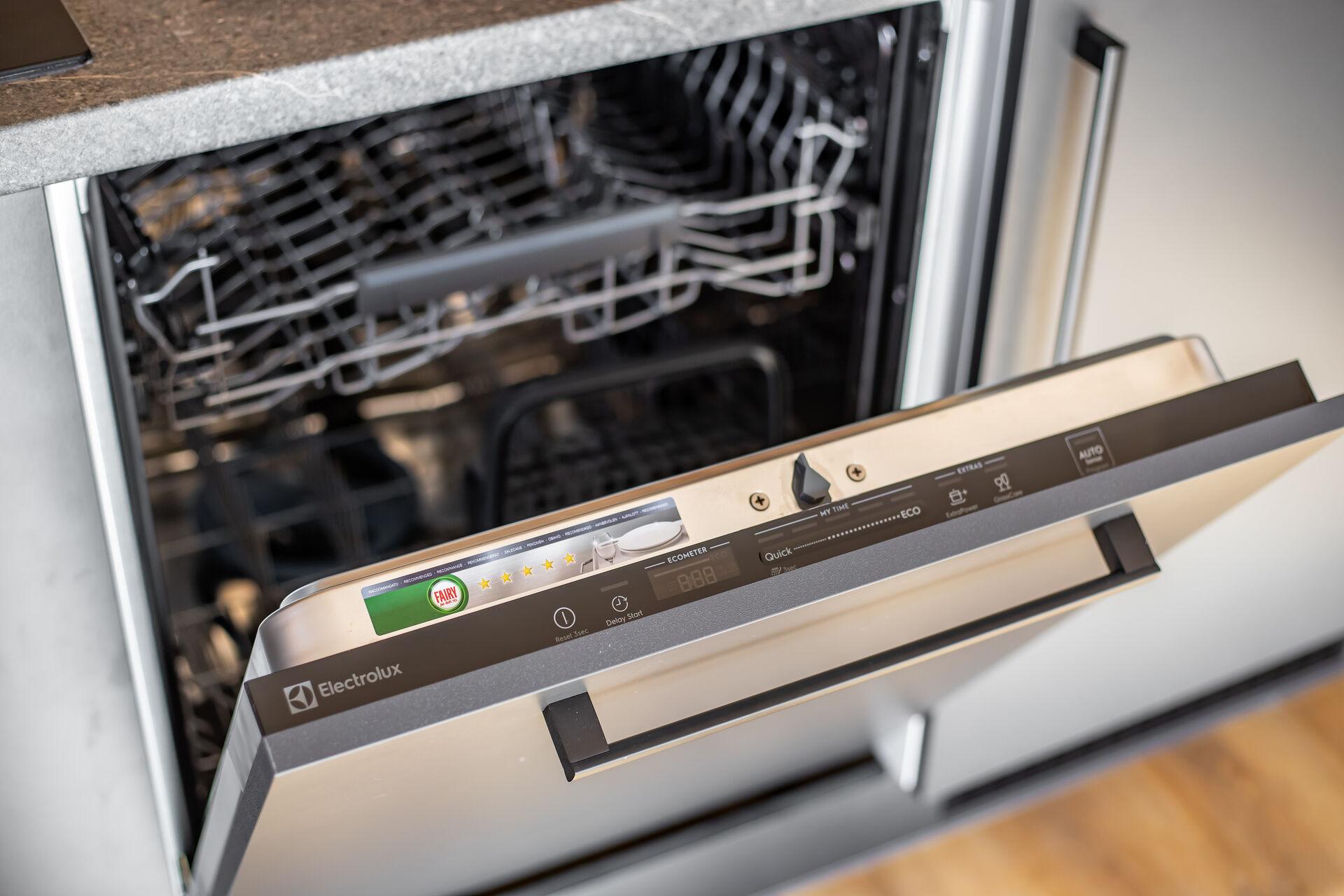 - elegantní kuchyňská linka na míru vybavená elektrickou a mikrovlnnou troubou, velkou myčkou, lednicí s mrazákem, indukční varnou deskou, digestoří s vlastním odtahem par a velkým množstvím úložných prostor