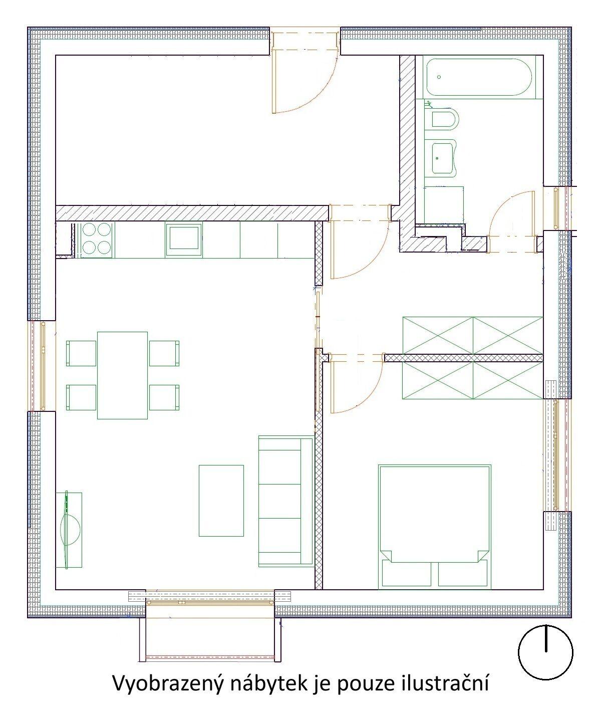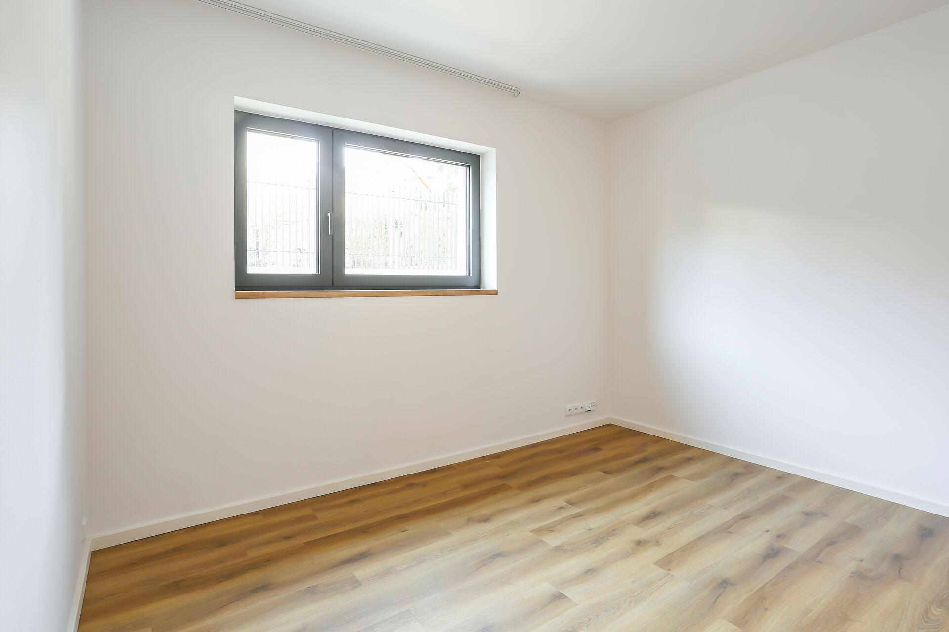 Ložnice je orientována na východní stranu, obývací pokoj na západ/jih a lodžie na jižní stranu s výhledem na okrasnou předzahrádku.