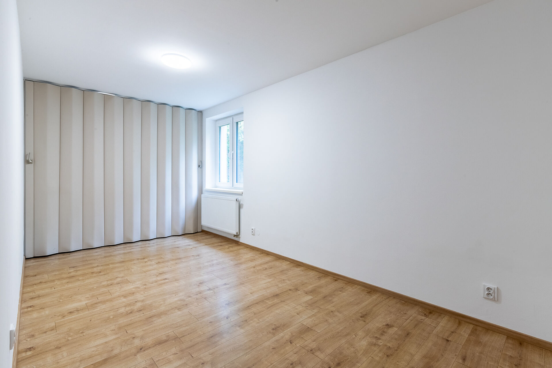 • Přízemí: vstupní hala, chodba se schodištěm, koupelna s WC a vanou, prostorný obývací pokoj propojený s jídelnou a kuchyňským koutem. Součástí kuchyně je praktická spíž.