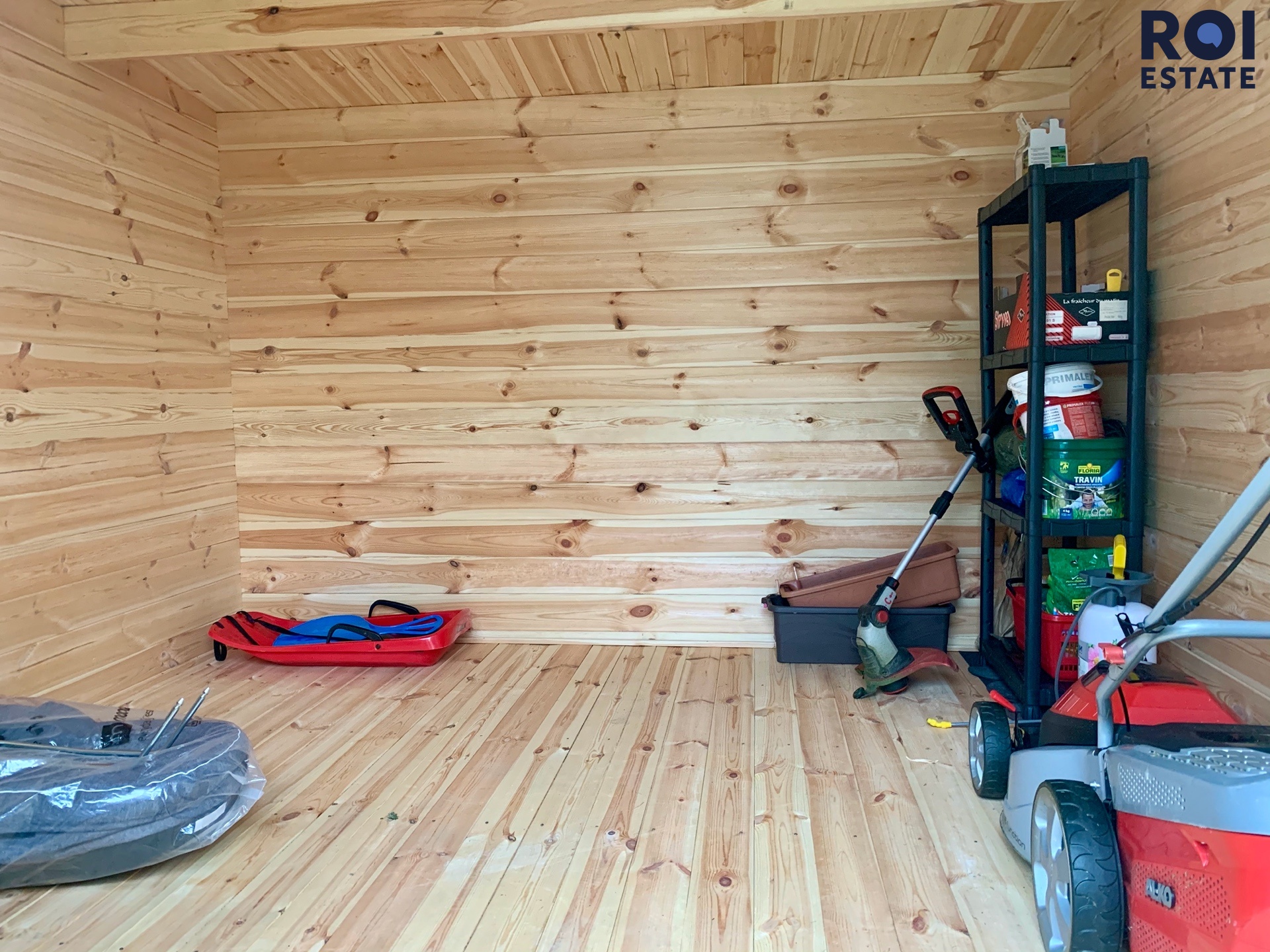 K domu náleží prostorná zahrada se zahradním domkem a posezením, ideální pro odpočinek i rodinná setkání. Parkování je možné na ulici nebo přímo na pozemku, garáž není k dispozici.