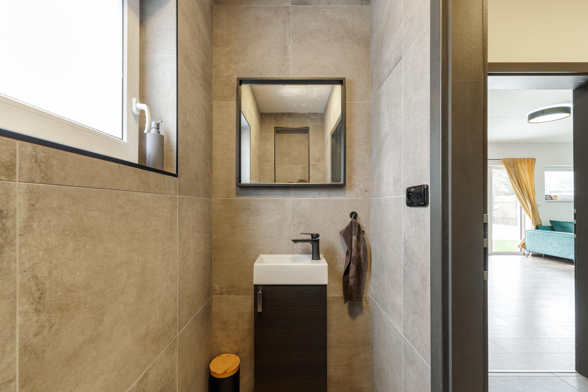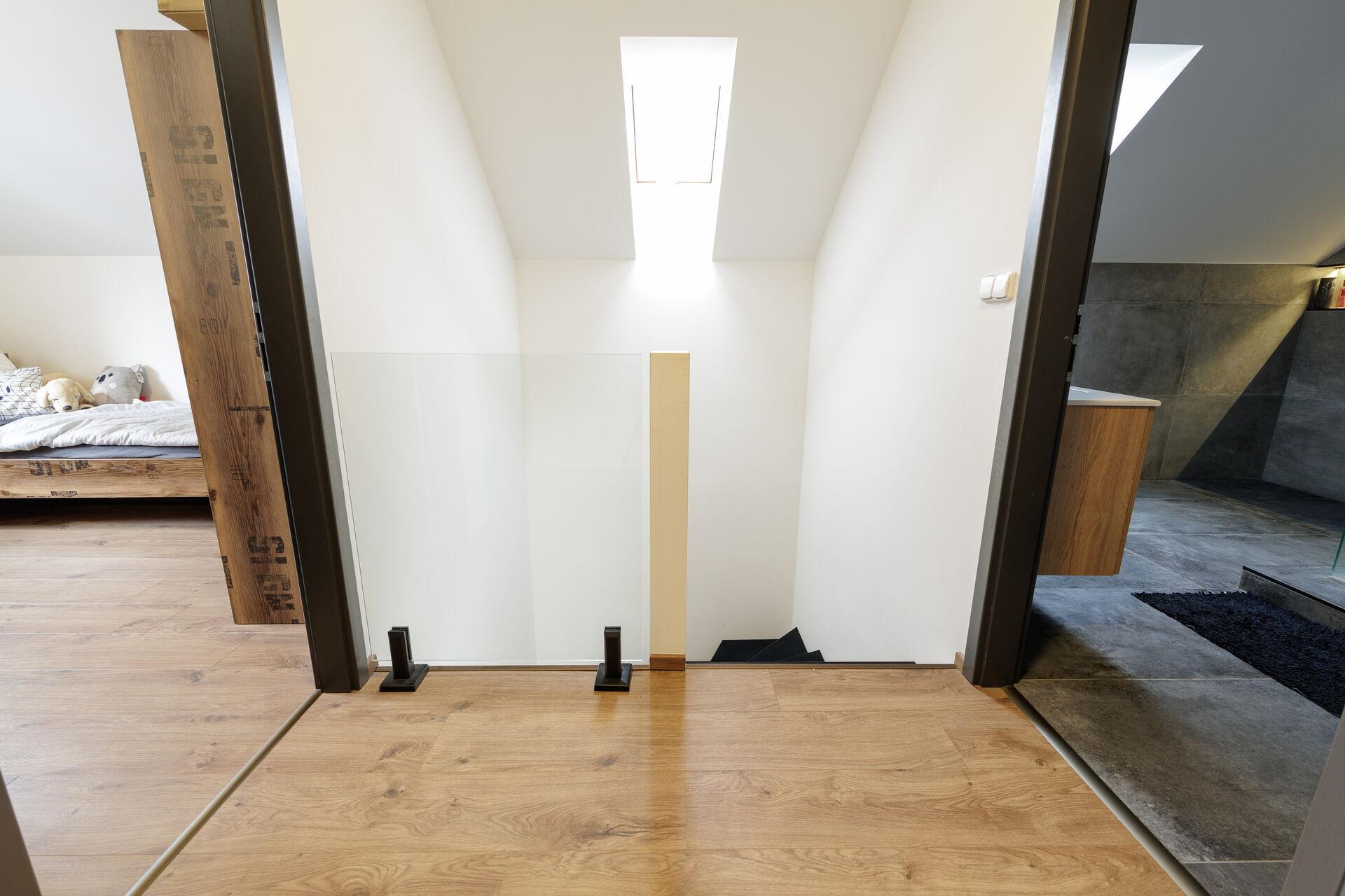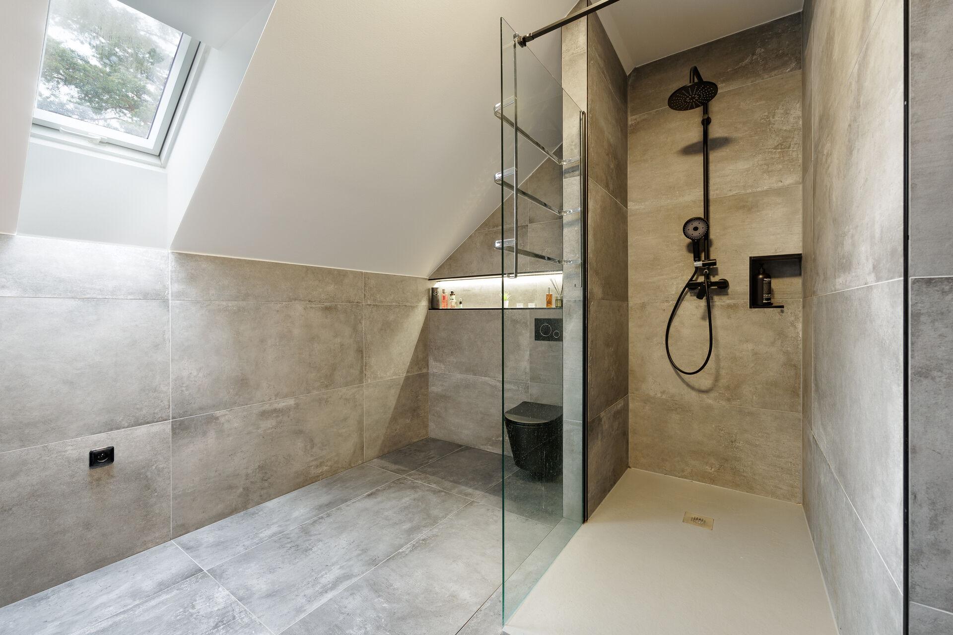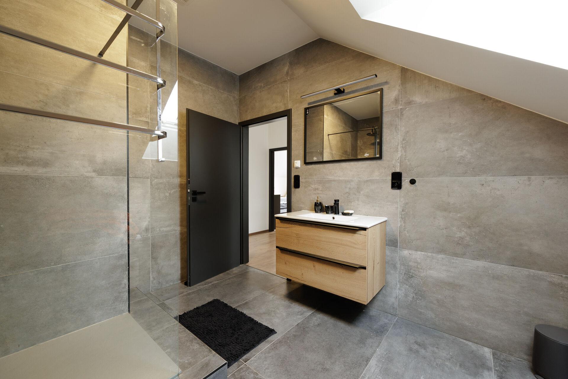 - velmi prostorná koupelna s walk-in sprchovým koutem, WC a umyvadlem, najdete zde také podlahové vytápění