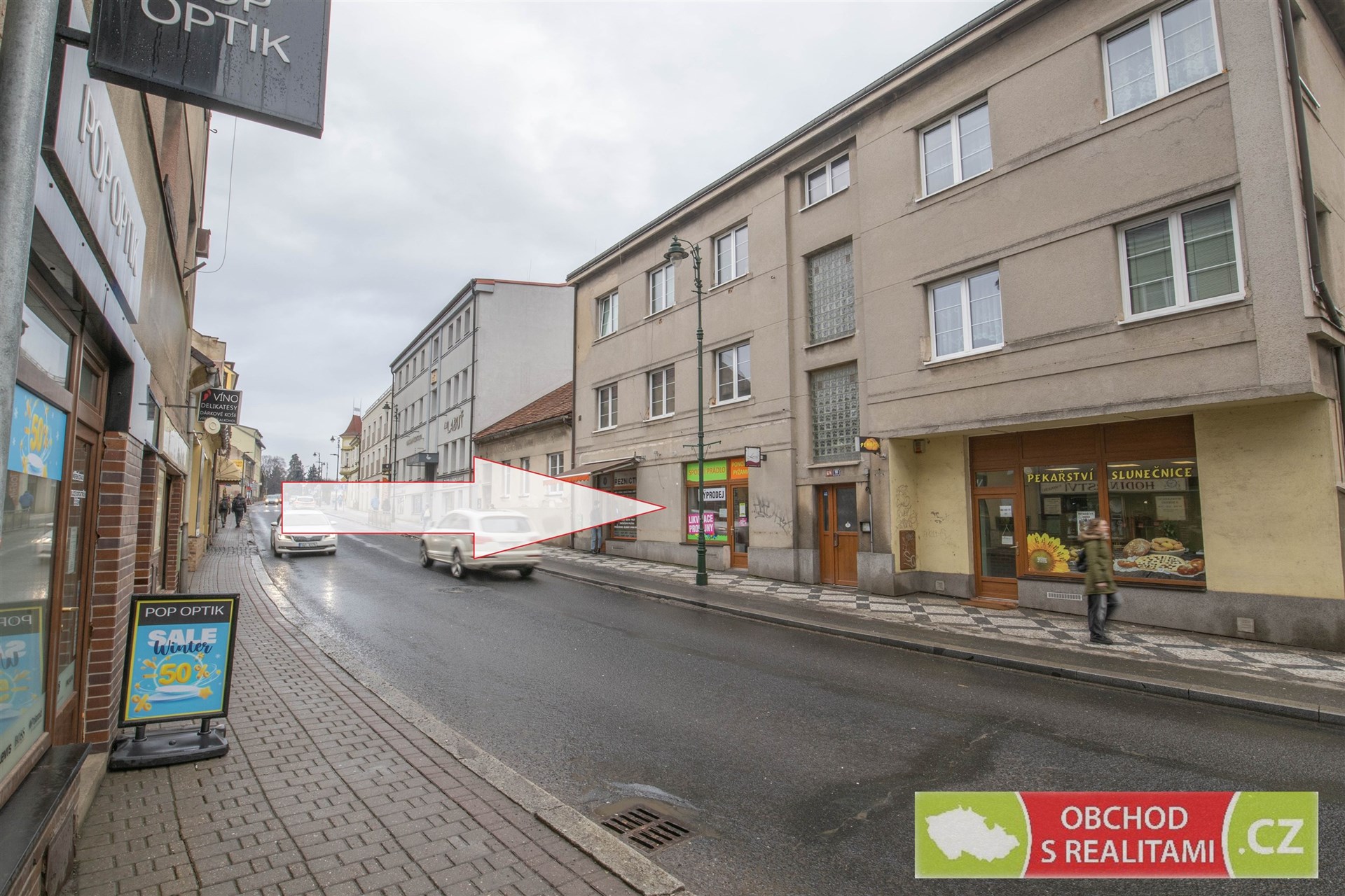 Obchodní prostor se nachází v domě na adrese 17. listopadu 674/10, 251 01 Říčany, tedy 100 metrů od Masarykova náměstí. Místo s vysokým průjezdem automobilů, pro pěší se jedná o trasu mezi náměstím a vlakovým nádražím.