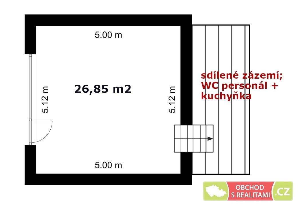 Obchodní prostor má výměru 27 m2, jedná se o téměř čtvercový půdorys (plánek prostoru přikládáme) + zázemí, které tvoří toaleta pro personál a prostor pro odložení osobních věcí personálu.