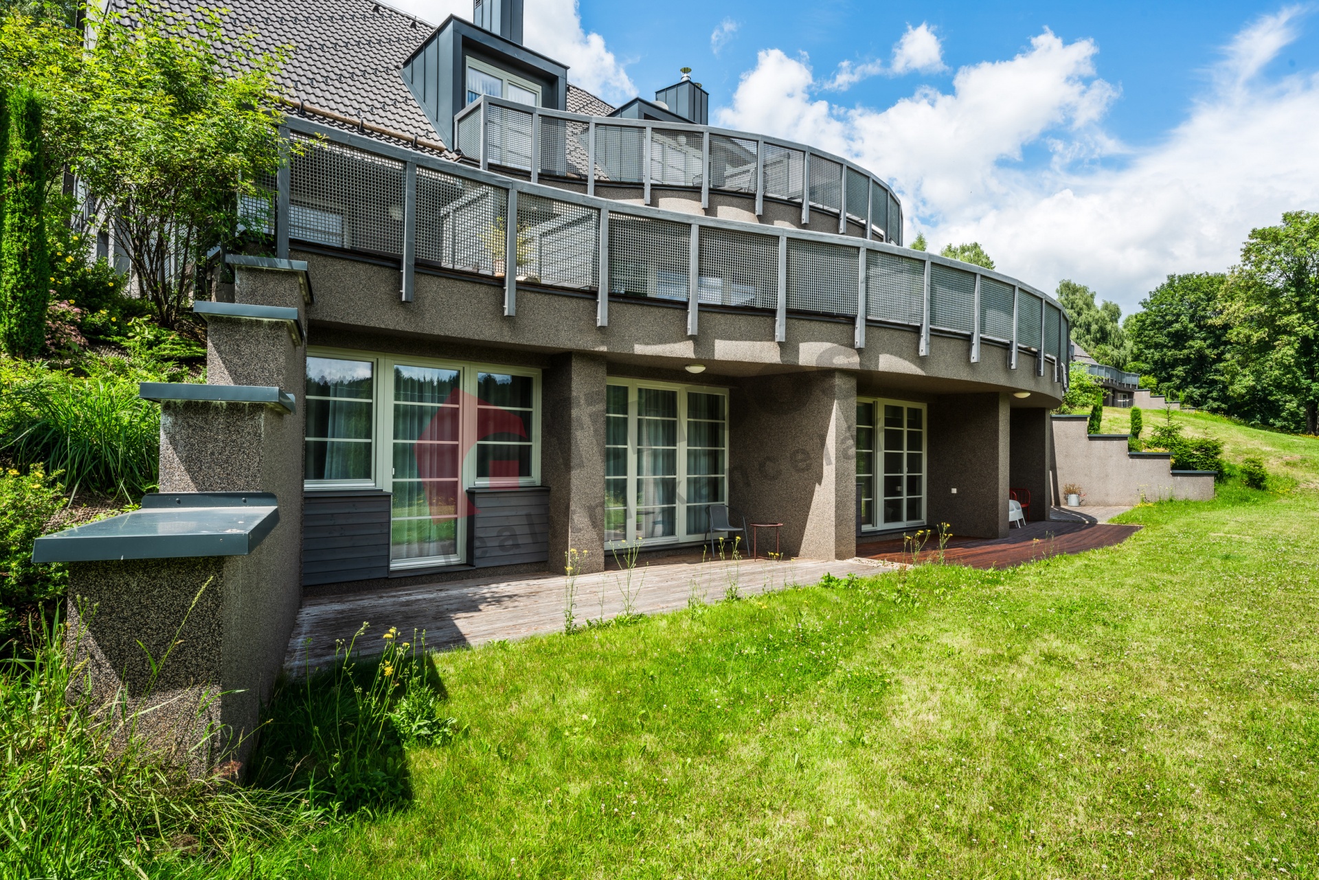 Tento byt se nachází v moderním dvoupodlažním apartmánovém domě – a ačkoli jde oficiálně o 1. podzemní podlaží, díkychytrému umístění domu ve svahu nabízí plnohodnotné prosluněné bydlení se soukromou terasou a předzahrádkou.