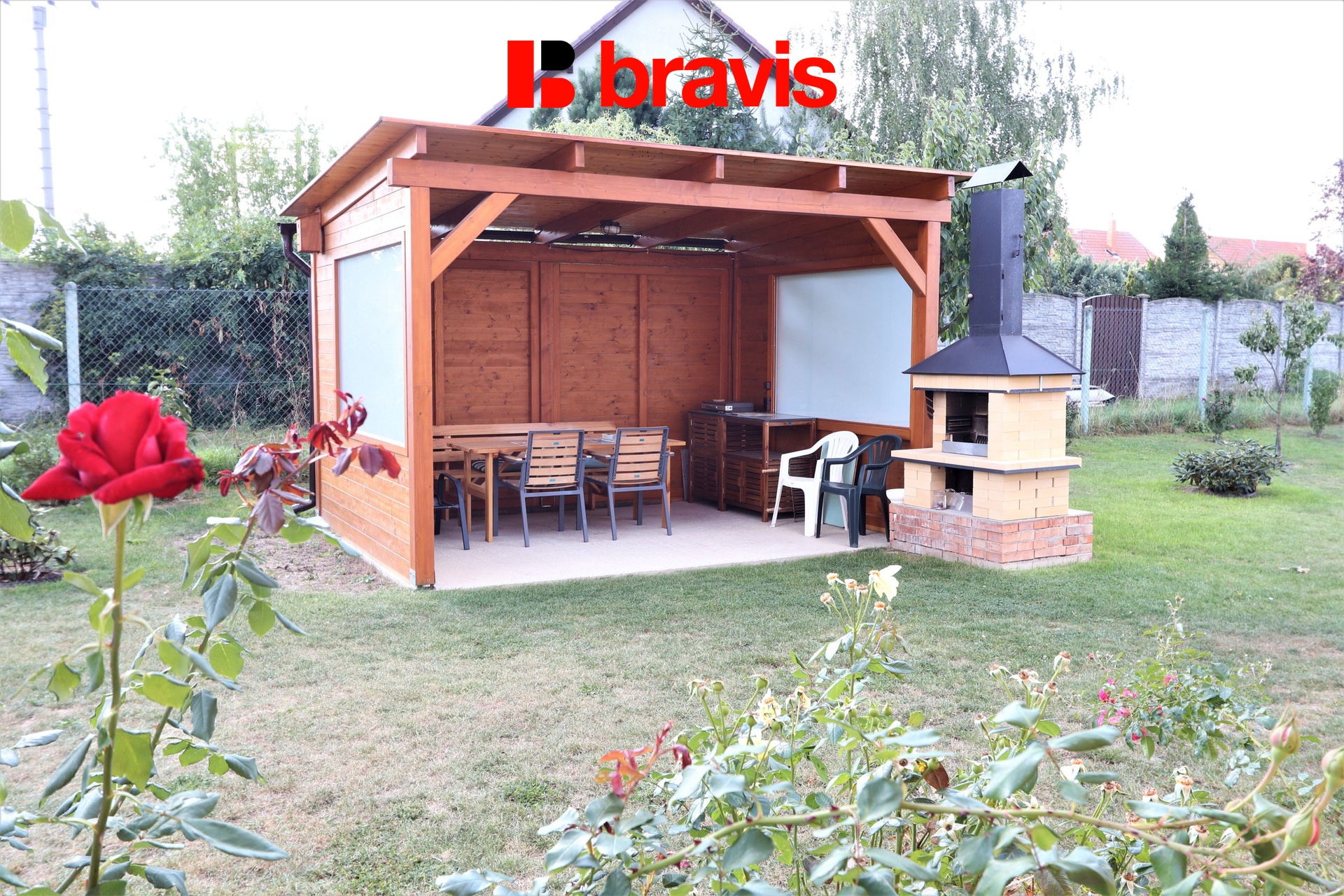 Součástí pronájmu je možnost užívat společnou oplocenou zahradu, kde si můžete pěstovat vlastní zeleninu, bylinky nebo květiny. V přední části zahrady najdete kryté posezení s pergolou a venkovním krbem – perfektní místo pro letní grilovačky, posezení s rodinou nebo večery.
