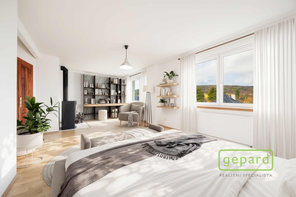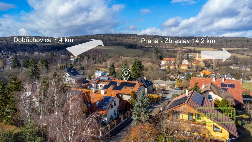Prostorný rodinný dům 350 m² v Řitce - fotovoltaika, tepelné čerpadlo, garáž, výhledy do zeleně