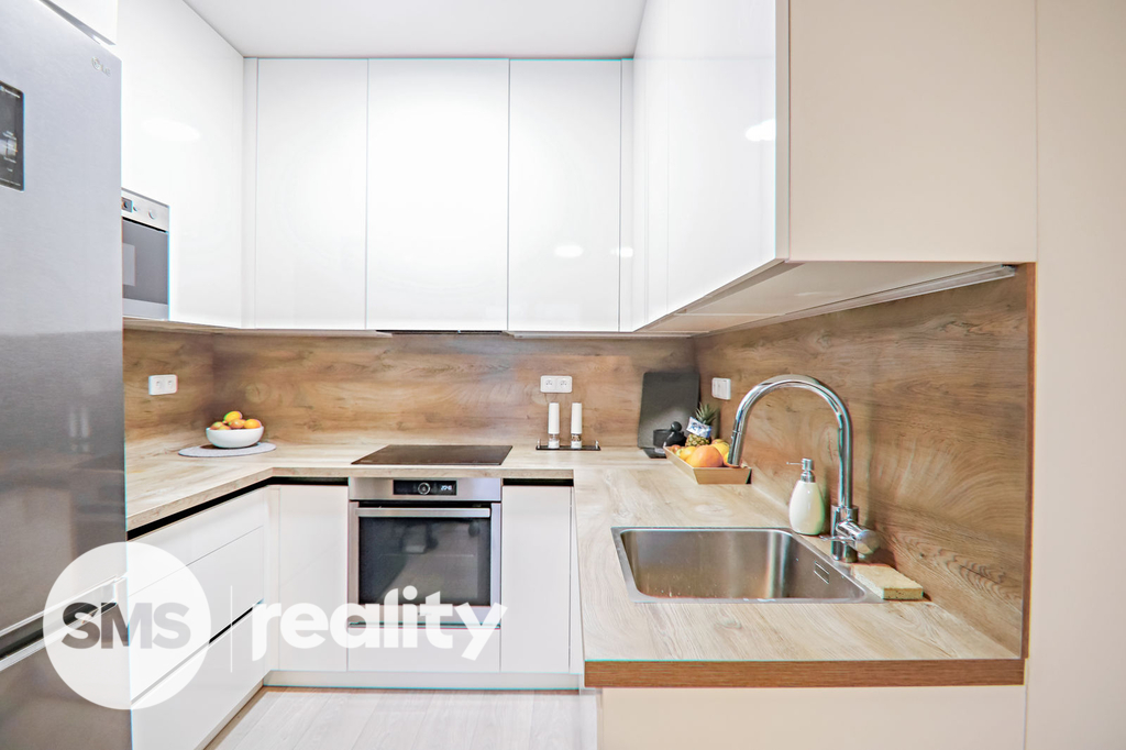 Součástí bytu je základní vybavení: kuchyňská linka se spotřebiči v koupelně je pračka, sušička, klasická vana a umyvadlo.