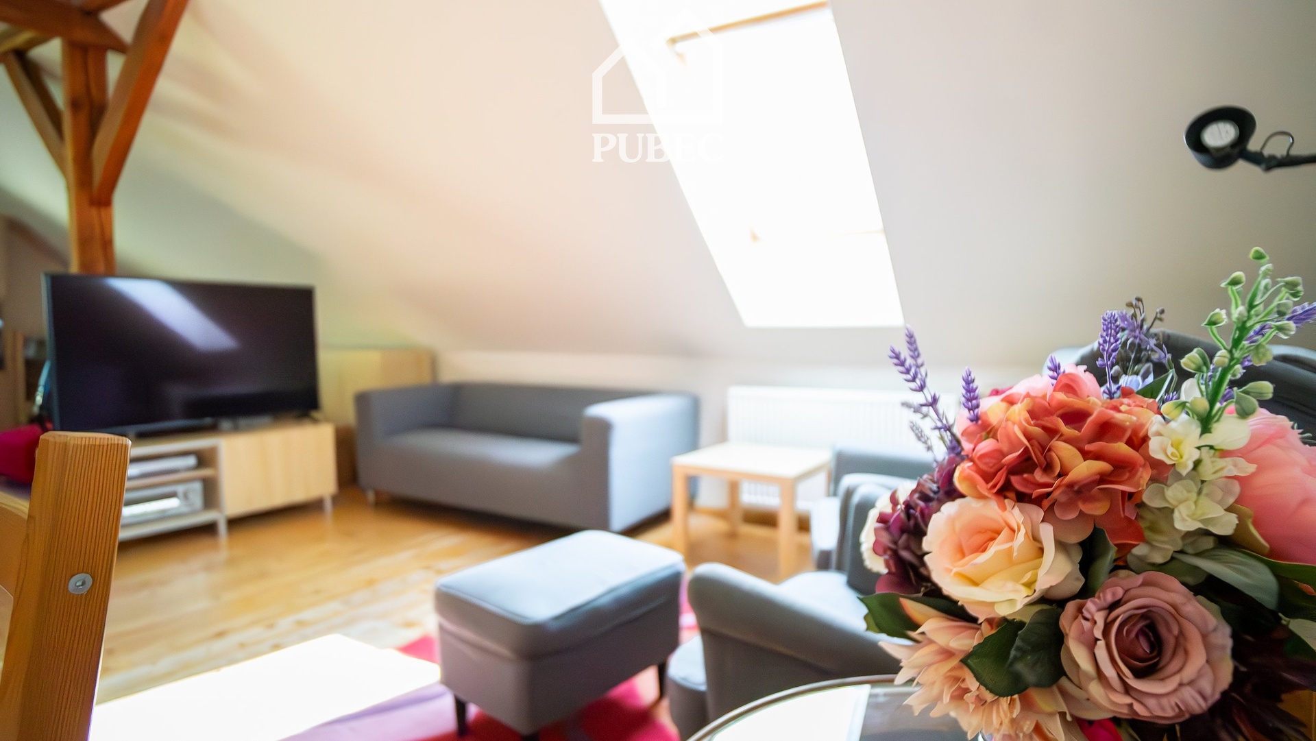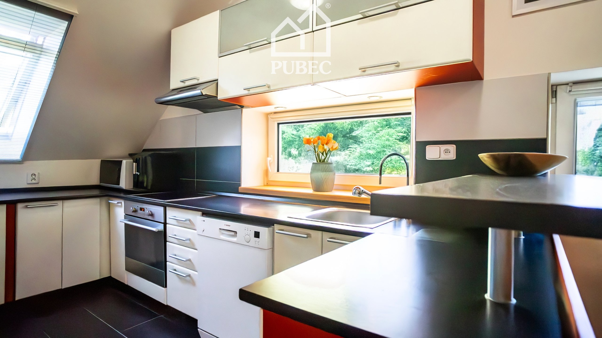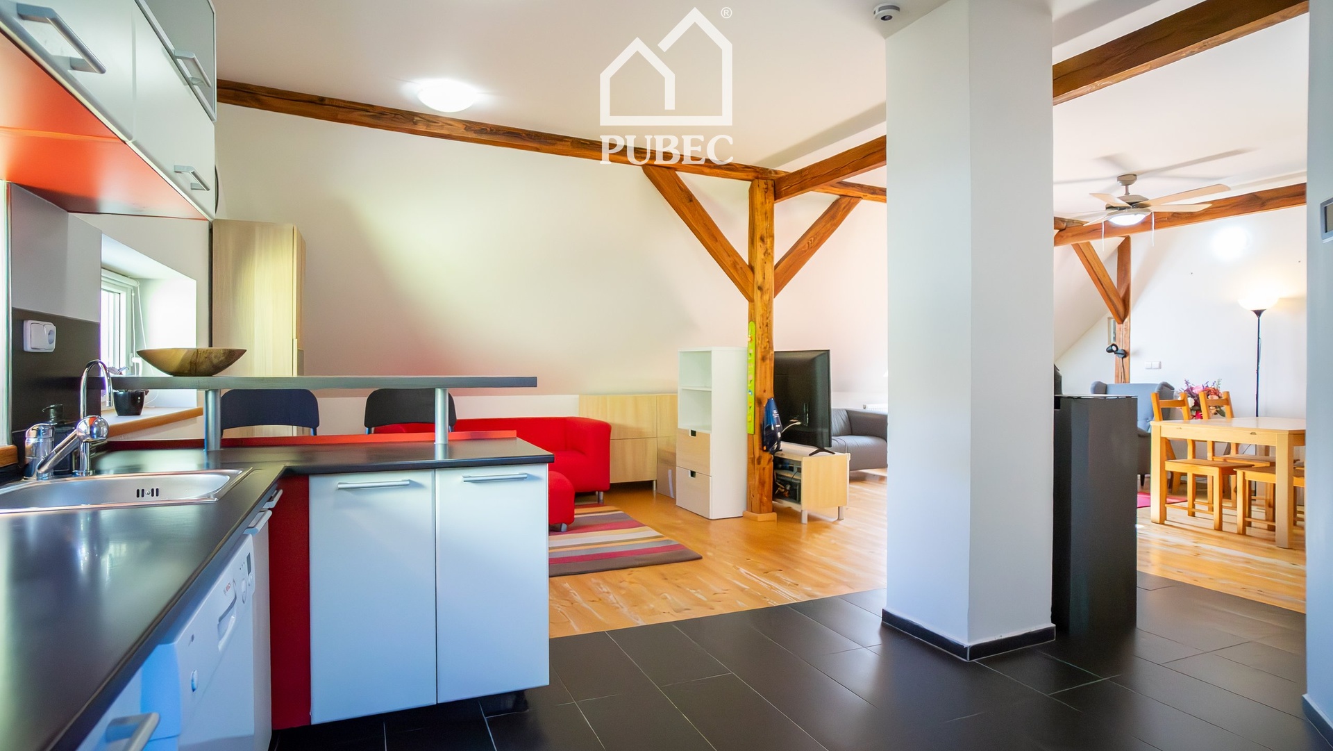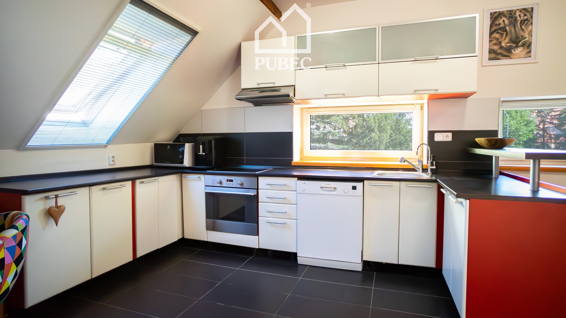 3.Podkrovní byt 4+kk(cca 120 m²) – tři pokoje, velkorysý obývací pokoj s kuchyňským koutem, koupelna s WC,samostatné WC, šatna.