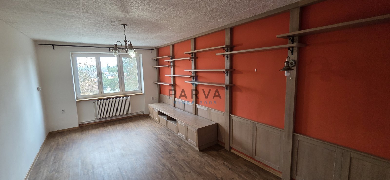 Byt je možné vybavit manželskou postelí a šatní skříní do ložnice.
