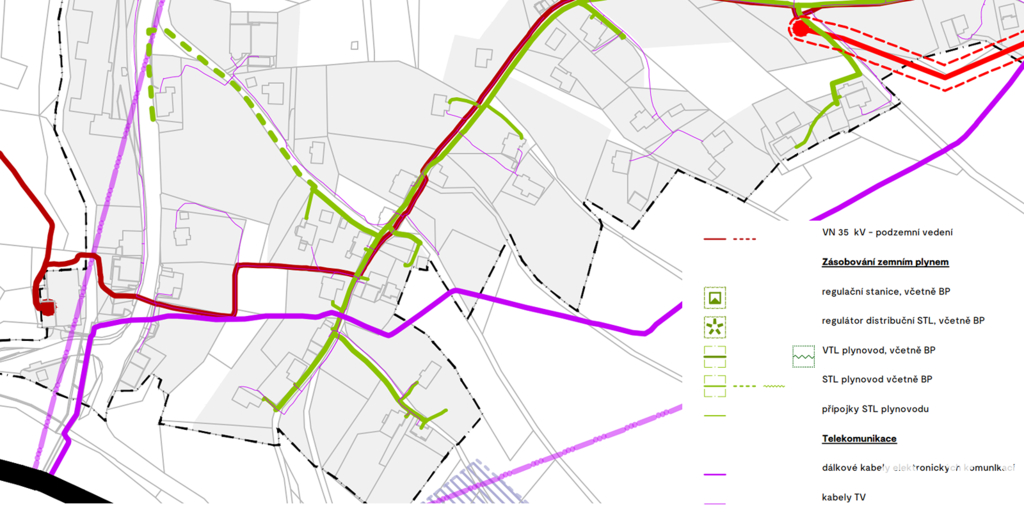 Dle současně platného územního plánu, změny č.3, se pozemek nachází v ploše zastavitelné Z.12 [SV.b] - rozšíření zastavitelných ploch obytných venkovských vnějších, v plochách smíšené obytné - venkovské vnější. Na pozemku se nachází napojení na elektřinu a internet, vodovodní řád a splašková kanalizace je vedena ulicí pod pozemkem.