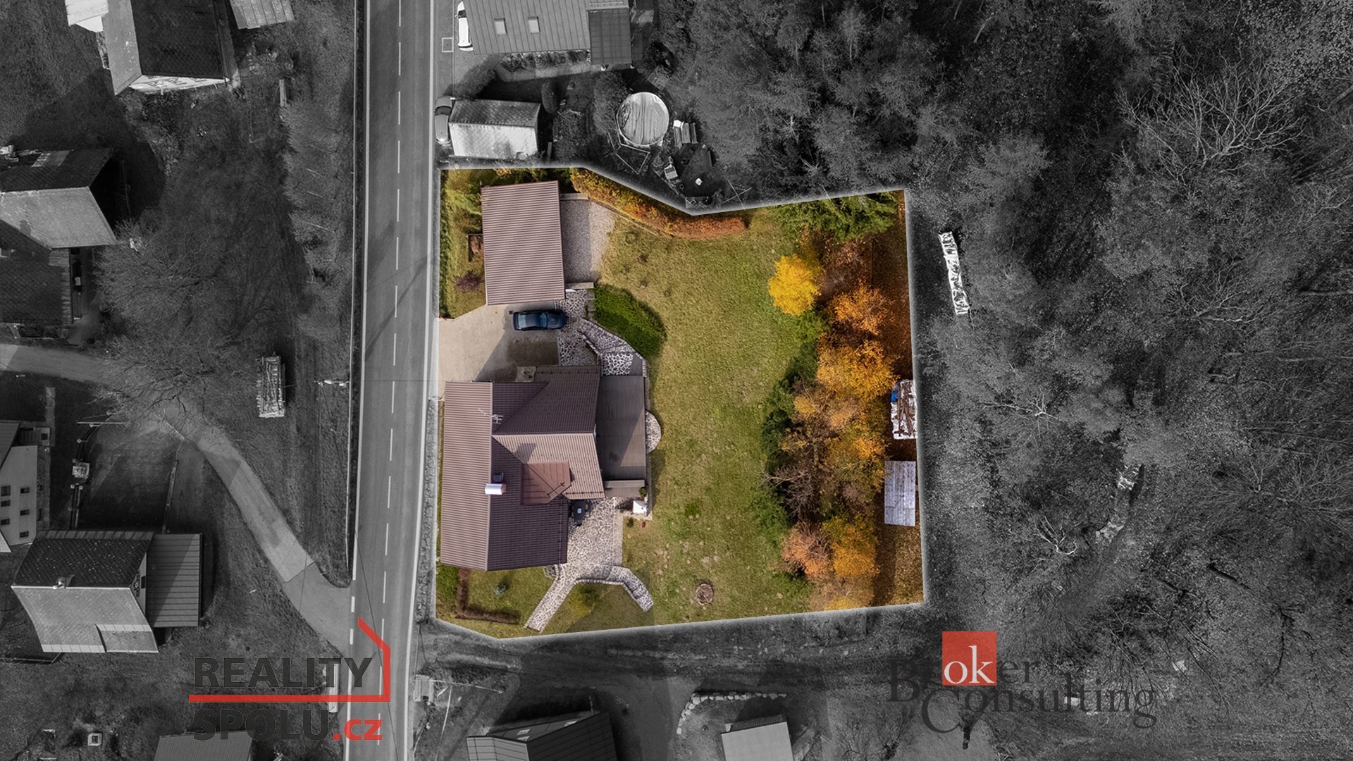 • Dostupnost: nová asfaltová příjezdová komunikace celoročně udržovaná, parkování pro 5 automobilů