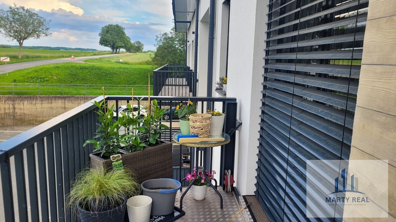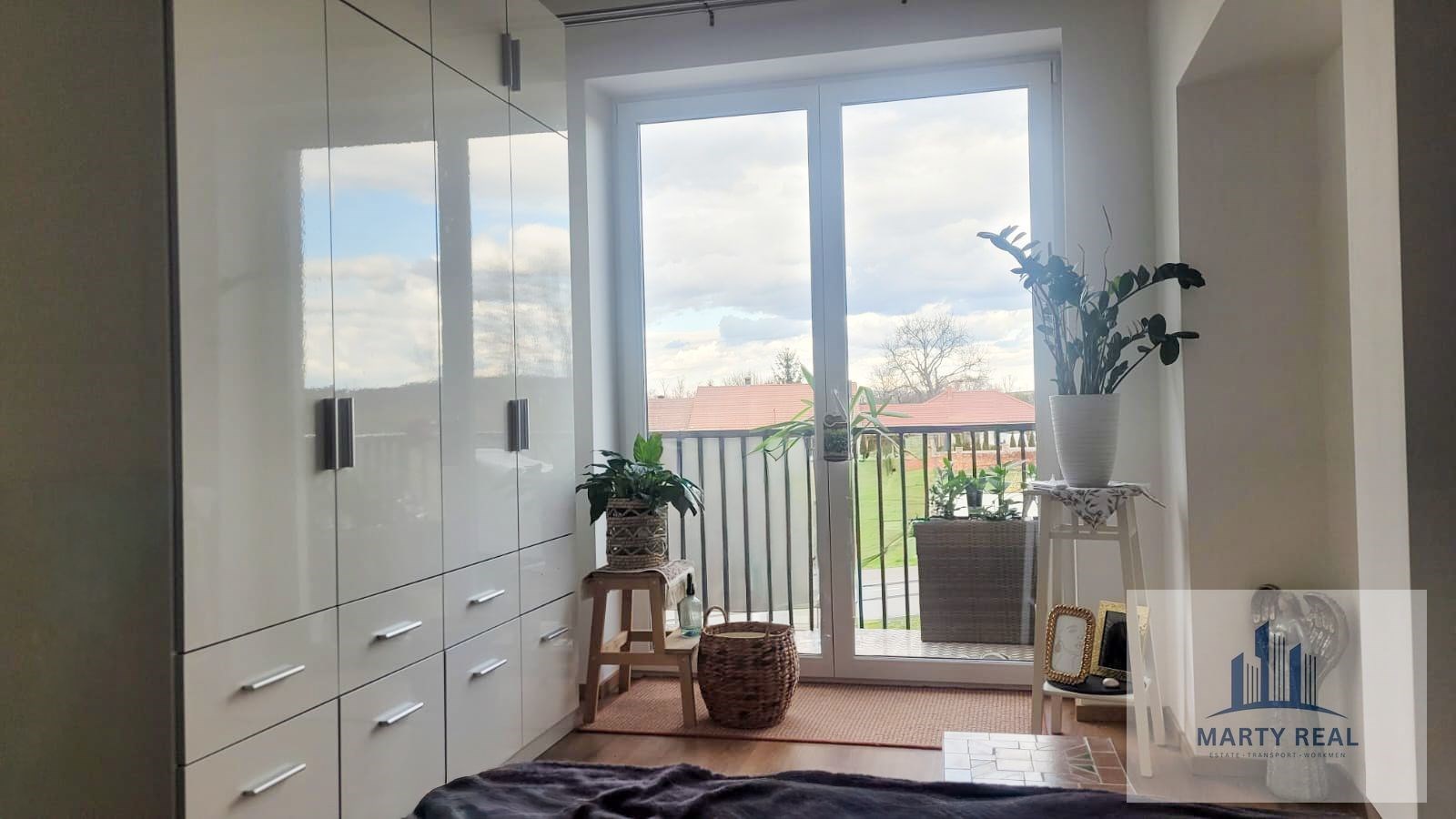 Pokud hledáte klidné a příjemné bydlení s výhledem na okolní krajinu, tento byt o celkové užitné ploše 56 m² s přidruženou terasou 7,5 m² nabízí ideální řešení. Obývací pokoj spojený s kuchyní je prosvětlený velkými okny směřujícími na severovýchod, ze kterých je vidět krásný východ slunce. K bytu náleží také sklepní kóje s regály, která poskytuje dostatek úložného prostoru.