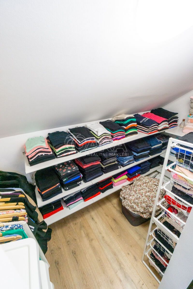 V přízemí domu je situována vstupní chodba, technická místnost, toaleta, šatna a prostorná kuchyně spojená s obývacím pokojem. V patře se nachází chodba, ze které se vstupuje do ložnice s šatnou a dětského pokoje, prostorné koupelny s rohovou vanou, bidetem a toaletou. Zdobné schodiště spojuje obě patra. Pohodlná terasa na předzahrádce poskytuje relaxační prostor pro odpočinek v klidném prostředí. Na zahrádce nechybí ani menší zahradní domek na uskladnění kol a sekačky.