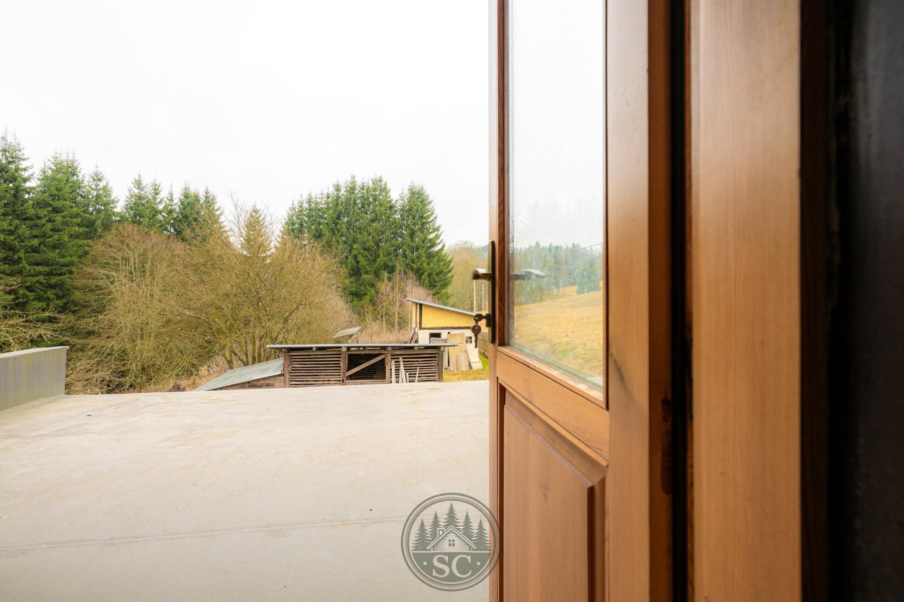 V patře pak najdete další dva pokoje, přičemž z jedné z místností je vstup do prostorné komory. Z chodby se vstupuje na terasu, ze které je krásný výhled na okolní krajinu. Zároveň je z chodby přístup do prostoru s přípravou na druhou koupelnu, kde jsou již připraveny rozvody vody, odpadu a elektřiny. Z chodby je také vstup na půdu. Horní patro tak nabízí zajímavý potenciál pro vybudování samostatného bydlení o dispozici 1+1.