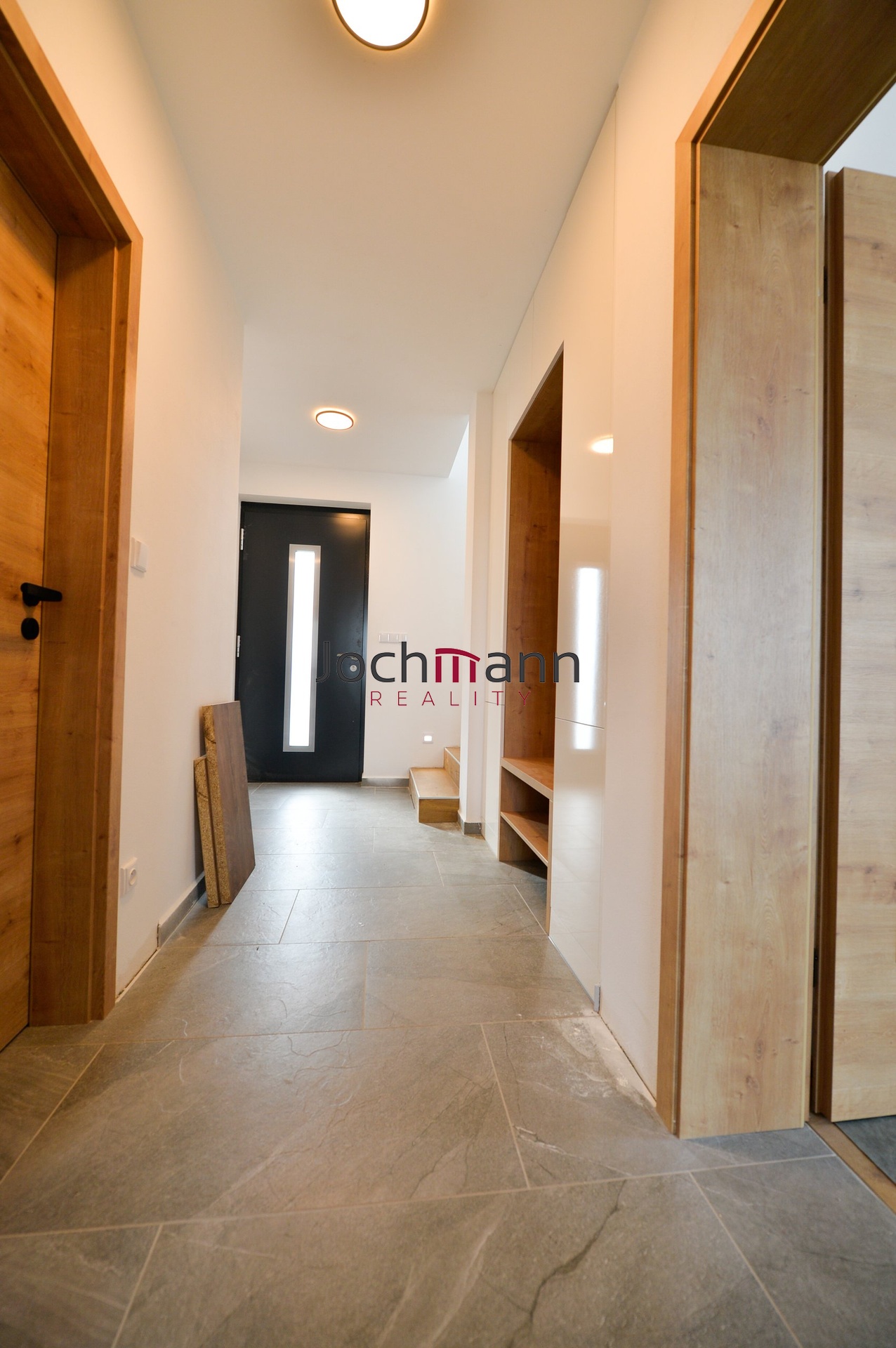 Na krásně klidném místě s optimální dostupností do centra dění se nachází novostavba rodinného domu o dispozici 6+kk, přičemž celý rodinný dům je zařízený v tom nejvyšším standardu dnešní doby. Vnitřní dispozice domu nabízí v 1.NP vstupní halu, technickou místnost, stylovou koupelnu se sprchovým koutem, pracovnu/ložnici a nádherně prosvětlenou hlavní obytnou místnost - jenž je spojená se stylově zařízenou a vybavenou kuchyňskou linkou. Kuchyňská linka je osazena veškerými spotřebiči a ve spojení s terasou, nabízí perfektní možnost posezení s rodinou. Ve 2. NP se dále nachází 4 samostatné a neprůchozí pokoje a horní koupelna s vanou a toaletou.