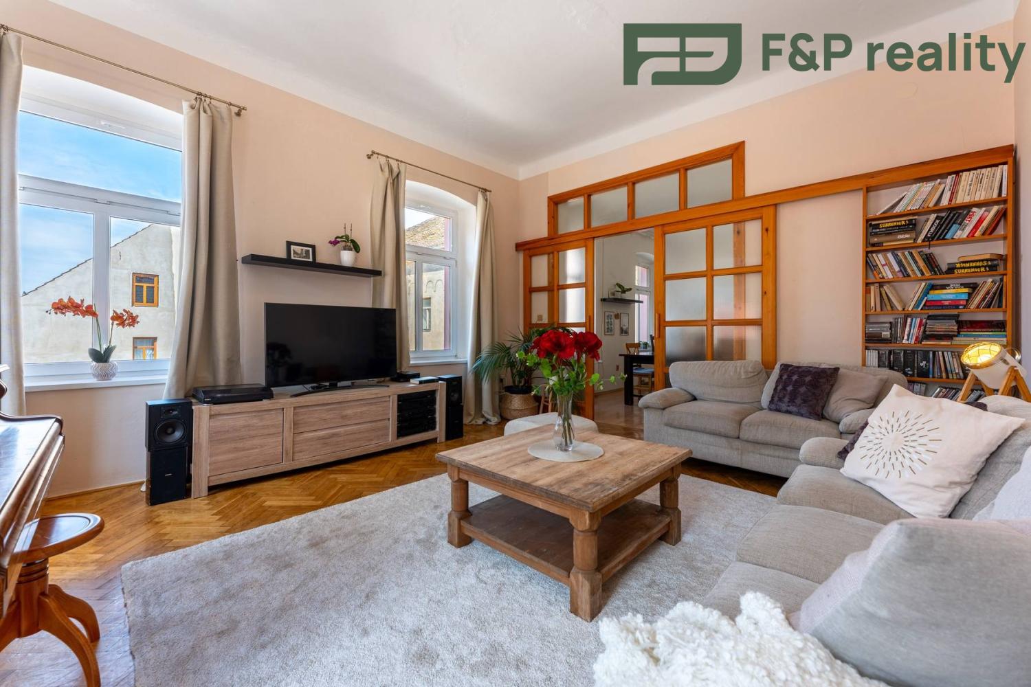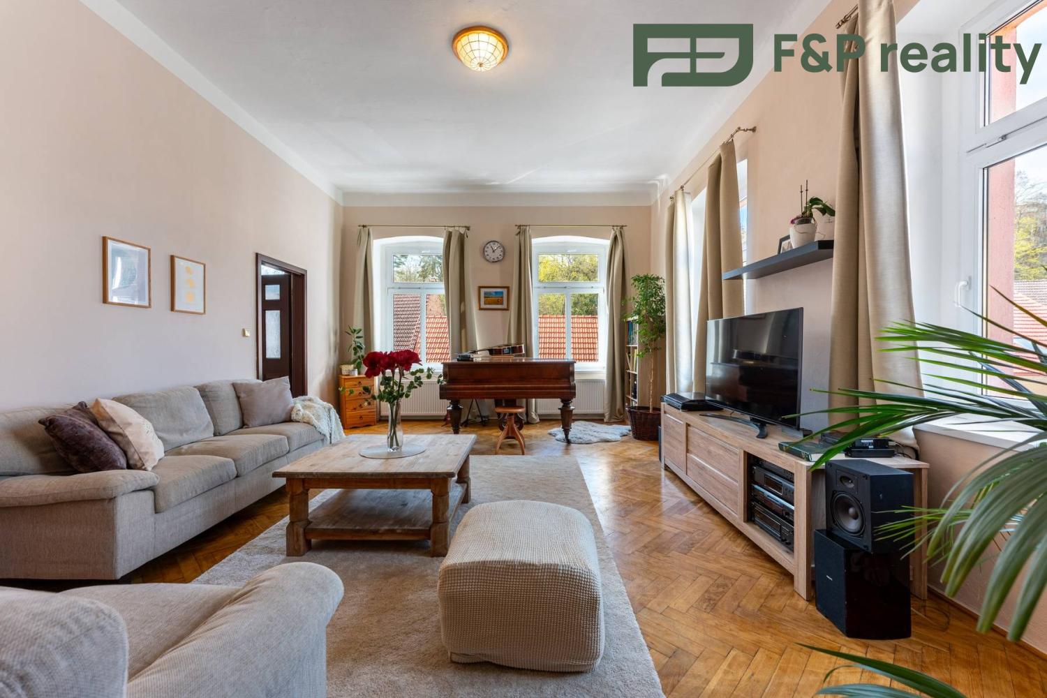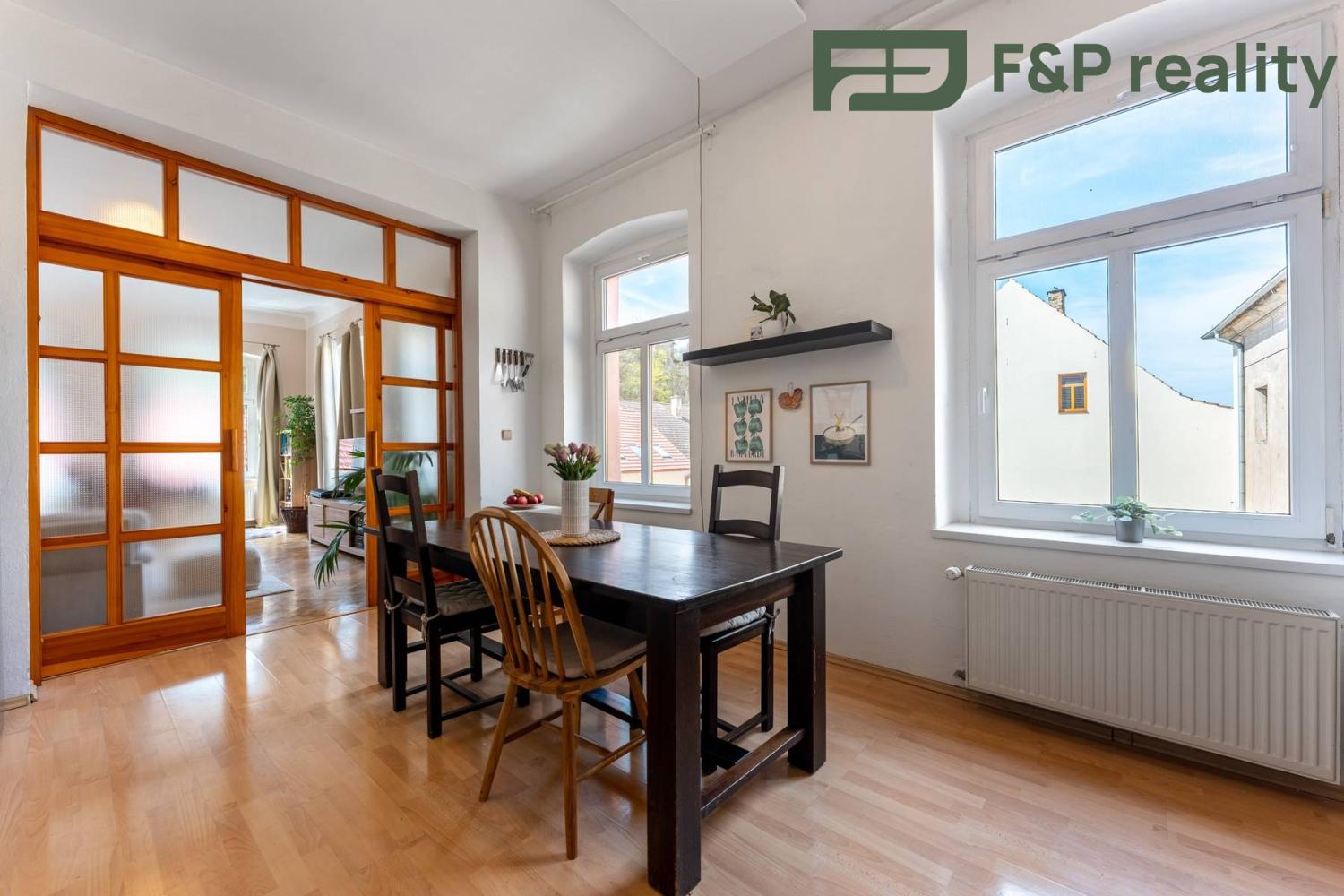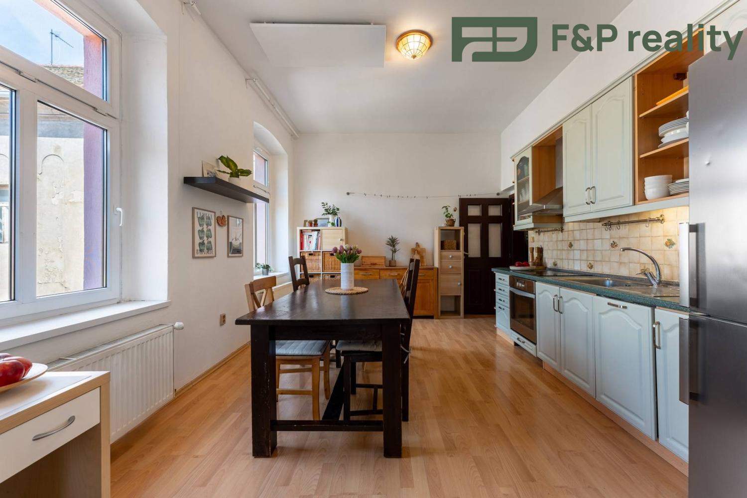 V historické zástavbě města Roudnice nad Labem Vám nabízíme k prodeji prostorově velkorysý byt o dispozici 4+1 s terasou o celkové ploše 121 m2 s výhledem na řeku Labe. Dům disponuje pouze 3 byty, každý na jednom patře a v přízemí se nacházejí komerční prostory, které nikterak nezasahují do společných prostor domu. Byt se nachází v 2. patře.