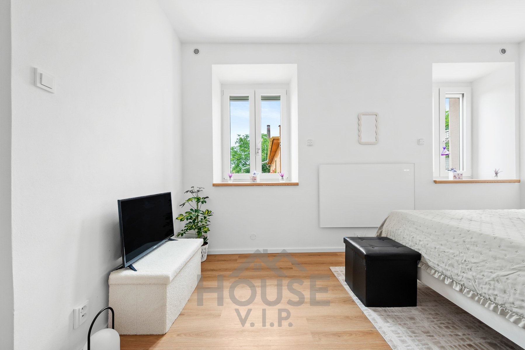 Nemovitost prošla kompletní rekonstrukcí – nové rozvody elektřiny a vody, podlahy, omítky, koupelna i kuchyňská linka. Komfort bydlení zvyšují venkovní žaluzie a příprava na instalaci vnitřního stínění.