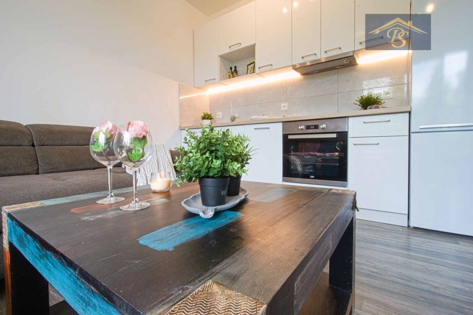 Vytápění je řešeno podlahovým topením s dálkově ovládanými termostaty, lze ovládat pomocí aplikace v mobilním telefonu, jednotlivě pro každou místnost. Další možností vytápění a chlazení je klimatizační jednotka, která je umístěna v obývacím pokoji. Kuchyňské zázemí tvoří na zakázku zhotovená kuchyňská linka s vestavnými spotřebiči - sklokeramická deska, trouba, myčka, odsavač par a volně stojící lednice s mrazákem. Hygienické zázemí tvoří sprchový kout, umyvadlová skříňka a závěsná toaleta. Bytová jednotka bude k dispozici od 1.5.2026 a bude kompletně připravena a vyklizena.