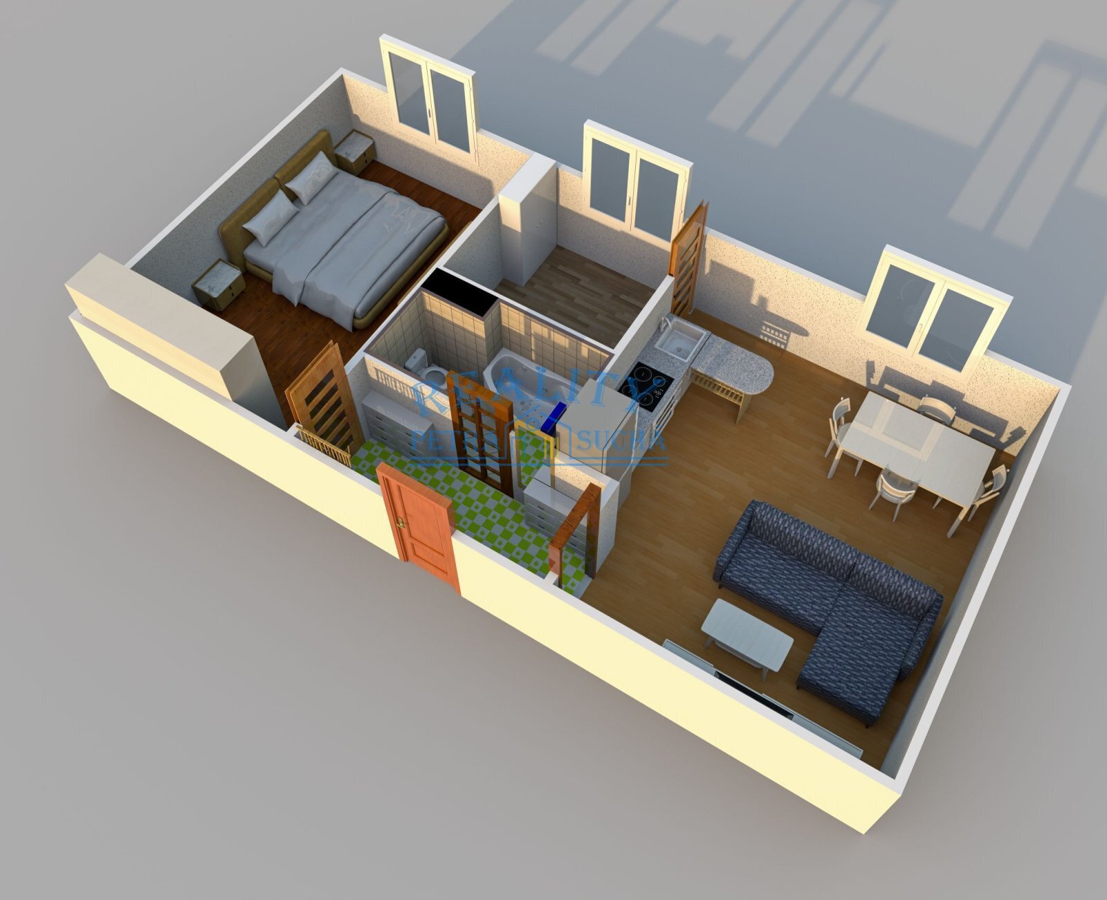 Nabízím k pronájmu plně vybavený byt 3+kk umístěný ve 3NP bytového domu v klidné části města Roudnice nad Labem. Dominantou bytu je prostorná obývací část s kompletně zařízeným kuchyňským koutem s vestavěnými spotřebiči (plynová varná deska, trouba, mikrovlnná trouba, digestoř) a samostatně stojící lednice s mrazákem. Ložnice je vybavena postelí, komodou, šatní skříní a nočními stolky. Hygienické zázemí tvoří společná koupelna s toaletou. Na podlahách je položena plovoucí podlaha v kombinaci s keramickou dlažbou. Okenní otvory jsou osazeny plastovými dvojskly s žaluziemi. Bytová jednotka je po kompletní výmalbě připravena k okamžitému užívání. Součástí bytové jednotky je sklep umístěný v suterénu domu. Bytový dům je zateplený, řádně udržovaný a v klidné lokalitě. U domu je nové dětské hřiště, v docházkové vzdálenosti je kompletní občanská vybavenost (supermarkety, restaurace, kavárny, obchody, fitness centra, školy, školky).