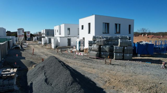 Exkluzivně nabízíme prodej novostavby řadového rodinného dvojdomu o dispozici 5+kk a užitné ploše 131,6 m² na pozemku o výměře 387 m²v klidné části města Roudnice nad Labem, v ulici Ve Dvoře. Dům se nachází v klidné zástavbě rodinných domů, která navazuje na starší a zavedenou obytnou čtvrť. Je součástí moderního developerského projektu, který klade důraz na vysoký standard, kvalitu výstavby a použitých materiálů. Dokončení projektu je plánované v druhé polovině roku 2026.V přízemí domu je prostorný obývací pokoj s kuchyňským koutem, jenž díky velkým francouzským oknům nabízí dostatek přirozeného světla a přímý vstup na zahradu s terasou orientovanou na jihovýchod. Dále je zde pokoj vhodný jako ložnice, pracovna nebo pokoj pro hosty, samostatné WC a praktická technická místnost vybavená tepelným čerpadlem (vzduch–voda), výlevkou a přípravou pro pračku i sušičku. V patře se nacházejí tři prostorné ložnice a komfortní koupelna s vanou a toaletou.Dům je vytápěn úsporným tepelným čerpadlem napojeným na podlahové vytápění, je vybaven rekuperací s řízeným větráním a kvalitními šestikomorovými okny s trojskly. Energetická třída B zajišťuje nízké provozní náklady. Nemovitost je připravena na instalaci moderních úsporných technologií, jako jsou fotovoltaické panely, závlahový systém nebo multimediální rozvody. Stavba je provedena s důrazem na detail, funkčnost a dlouhou životnost s použitím kvalitních materiálů od renomovaných dodavatelů.Na pozemku se nachází zastřešený úložný prostor – venkovní sklad navazující na výklenek pro umístění odpadových nádob. Vstupní část pozemku je připravena pro parkování, případně rozšíření o přístřešek pro auta.Lokalita nabízí výjimečné soukromí díky uzavřené ulici bez průjezdu. Zároveň je velmi dobře dostupná – centrum města je vzdáleno pouhých 7 minut chůze, nájezd na dálnici D8 je do 6 minut autem a cesta do severní části Prahy trvá přibližně 20 minut. Vlakové nádraží je vzdálené asi 1 km, navíc v blízkosti plánovaná rychlodráha přinese přímé spojení s centrem Prahy během 19 minut (kolaudace terminálu je plánována na rok 2030). Autobusová zastávka se nachází přímo u vjezdu do ulice, základní škola je v docházkové vzdálenosti 100 metrů. Lokalita je doplněna o veřejná parkovací stání včetně míst pro návštěvy.Bezpečné financování zajišťuje ochranu vaší investice – Financování je rozděleno do několika fází, které reflektují reálný průběh výstavby a zároveň umožňují přizpůsobení podmínkám konkrétní banky poskytující klientovi hypoteční úvěr. Tento model přináší vysokou míru jistoty, kontroly a transparentnosti celého procesu.