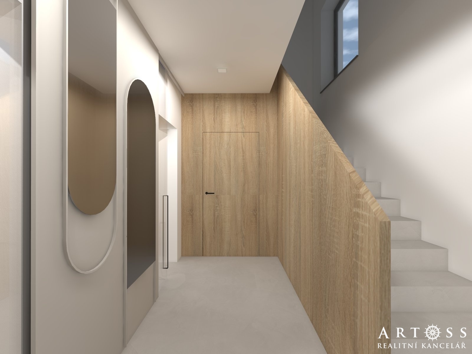 Nemovitost je ve fázi před kolaudací – nový majitel má tak jedinečnou možnost dokončit interiér podle svých představ (podlahy, dveře, sanita, kuchyně atd.). Pro prezentaci jsou použity vizualizační fotografie přímo od architekta. Pokud zájemce tento interiér osloví, je možné dům v tomto provedení dokončit přímo od stavitele a nebo si může dům dokončit individuálně.