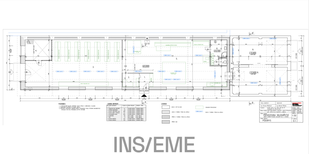 - Objekt se skládá z výrobního prostoru, kanceláře, kuchyňky a sociální zázemí se sprchovým koutem, WC a umyvadlem.