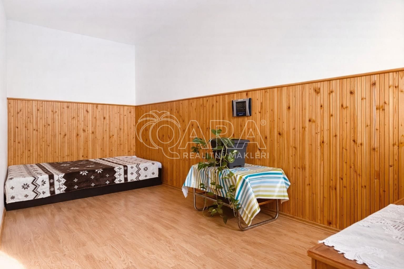 Dispozice domu je velmi praktická. V přízemí se nachází vstupní část s předsíní a halou, koupelna se sprchovým koutem, WC a tři samostatné místnosti. Jedna z nich vznikla úpravou původní garáže a dnes slouží jako plnohodnotný obytný prostor. Přízemí tak nabízí variabilní využití, například jako pracovna, pokoj pro hosty, zázemí pro podnikání nebo oddělená část pro vícegenerační bydlení.