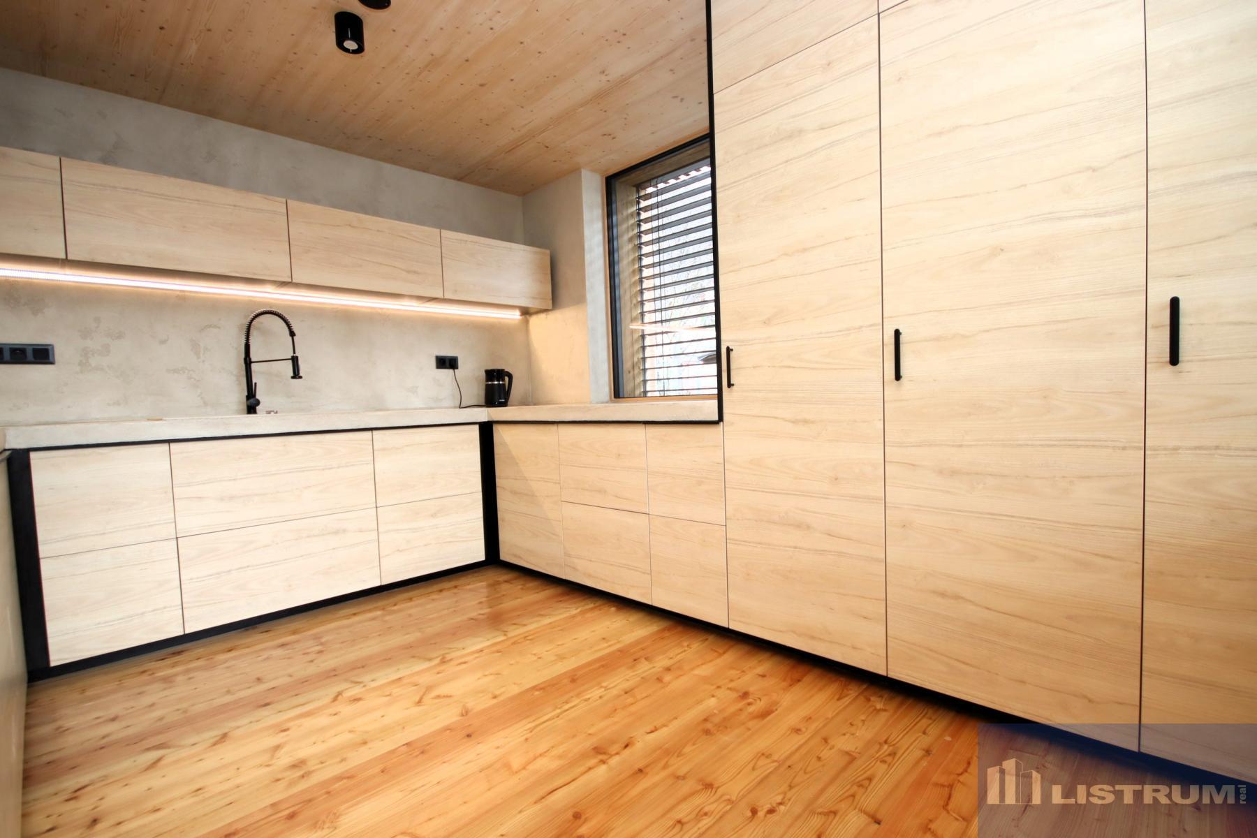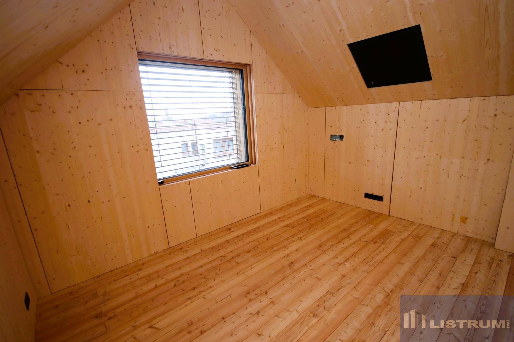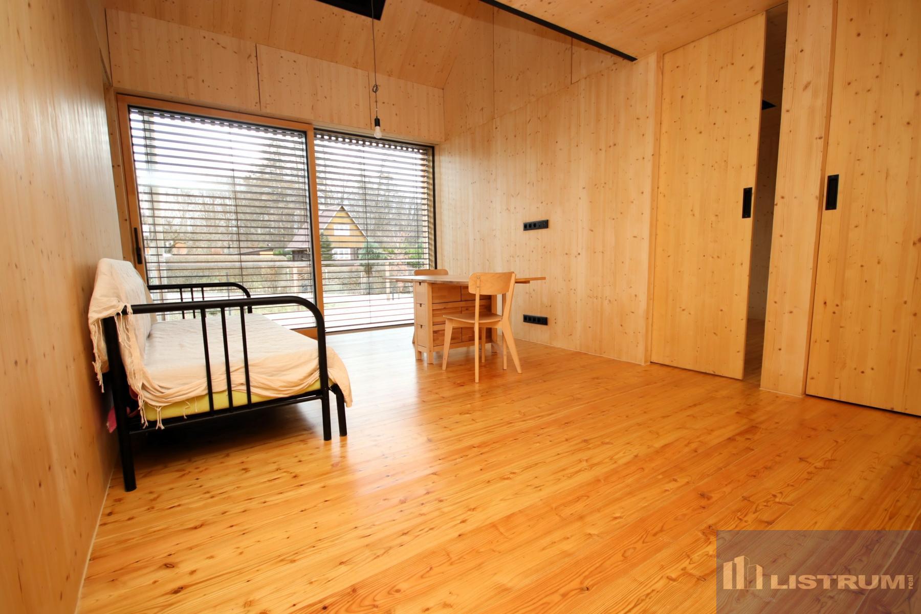 - Luxusní přírodní materiály masivní modřínové podlahy, smrkové biodesky, cementová stěrka,
