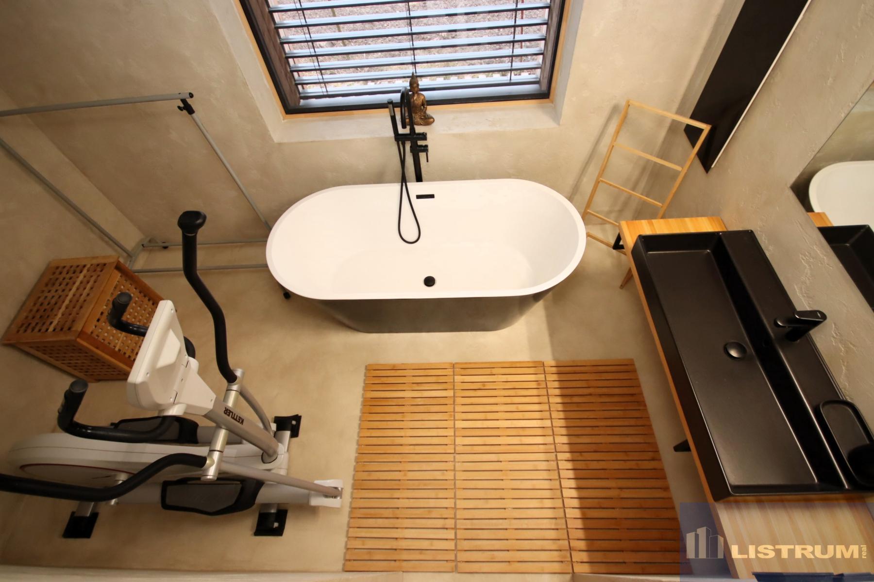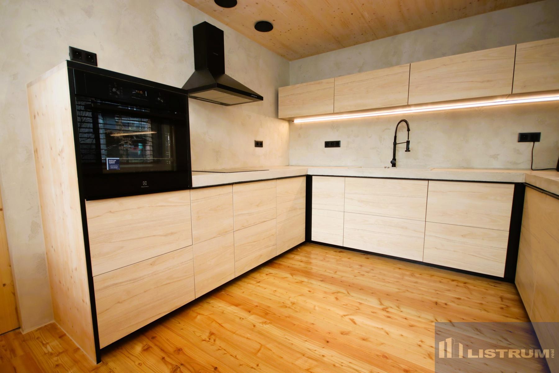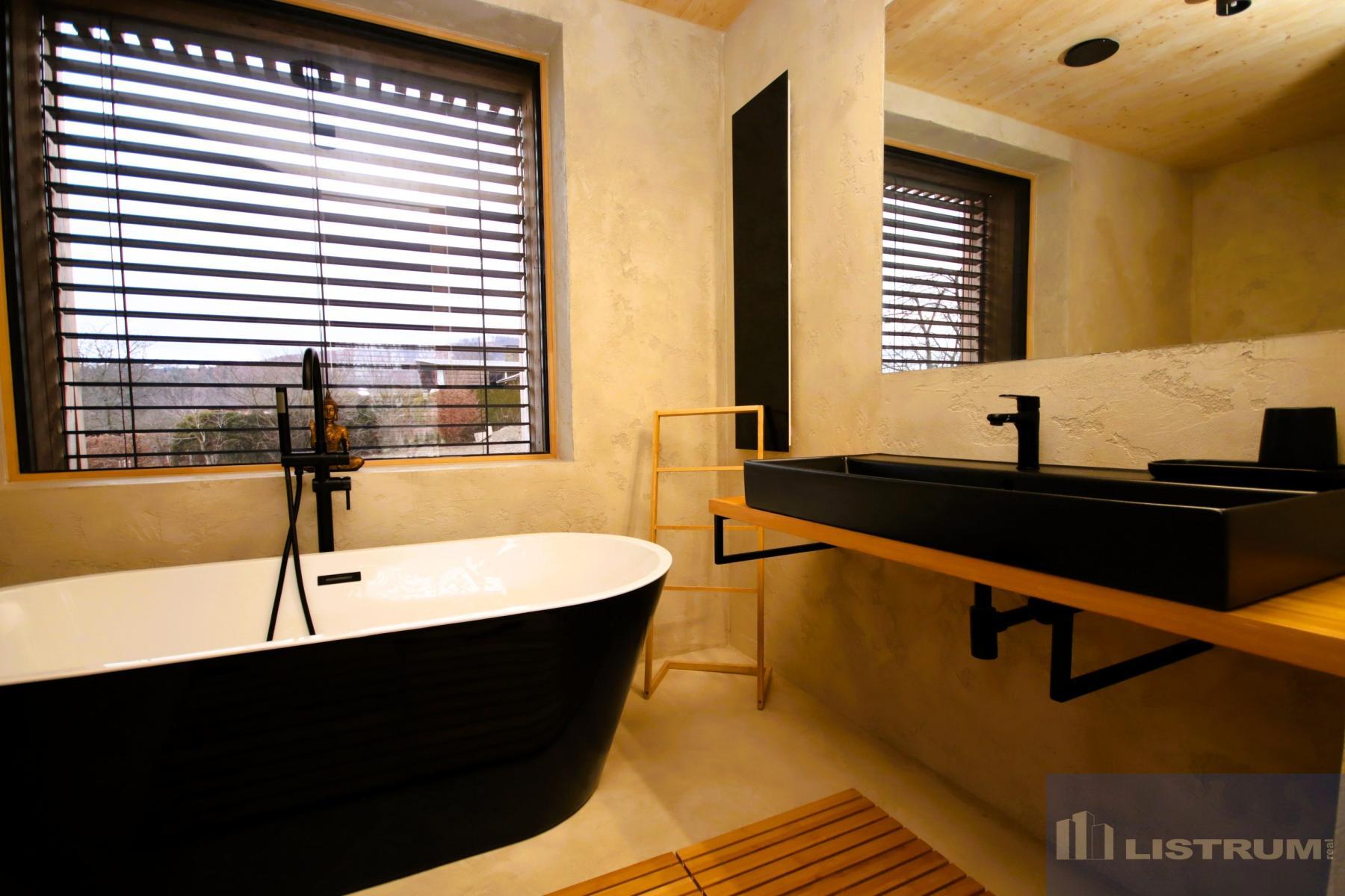 - Luxusní přírodní materiály masivní modřínové podlahy, smrkové biodesky, cementová stěrka,