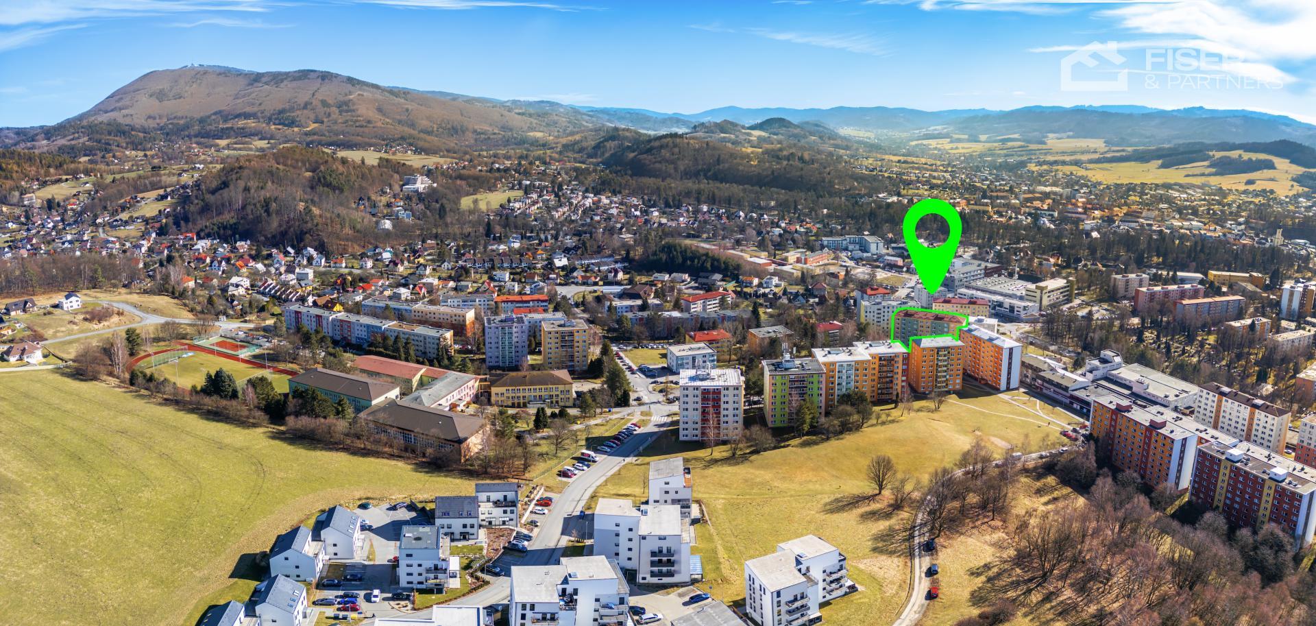 Byt se nachází v udržovaném revitalizovaném bytovém domě v klidné části města s dobrou dostupností veškeré občanské vybavenosti školy, školky, obchody, zdravotní středisko i zastávka MHD jsou v docházkové vzdálenosti. Lokalita nabízí klidné bydlení s blízkostí přírody a krásného okolí Beskyd.
