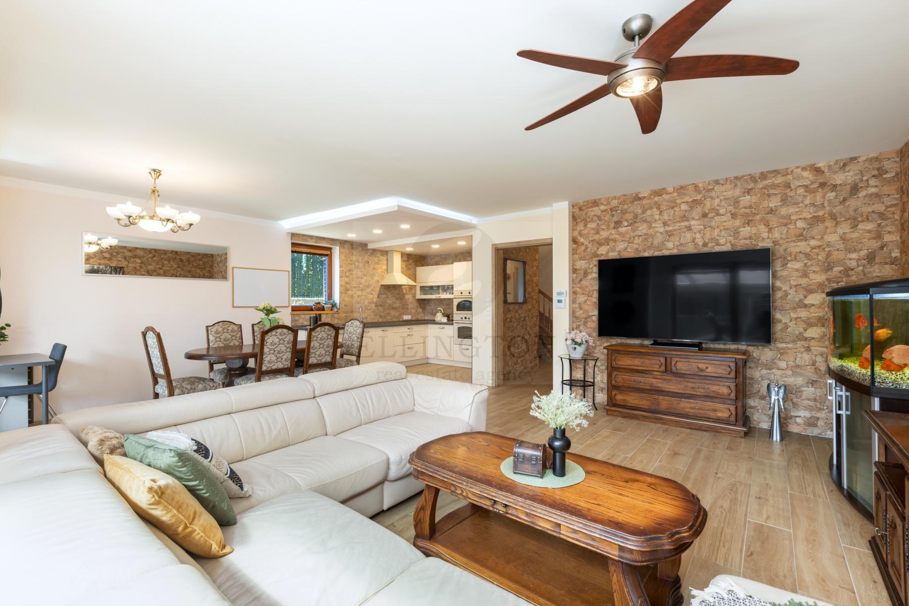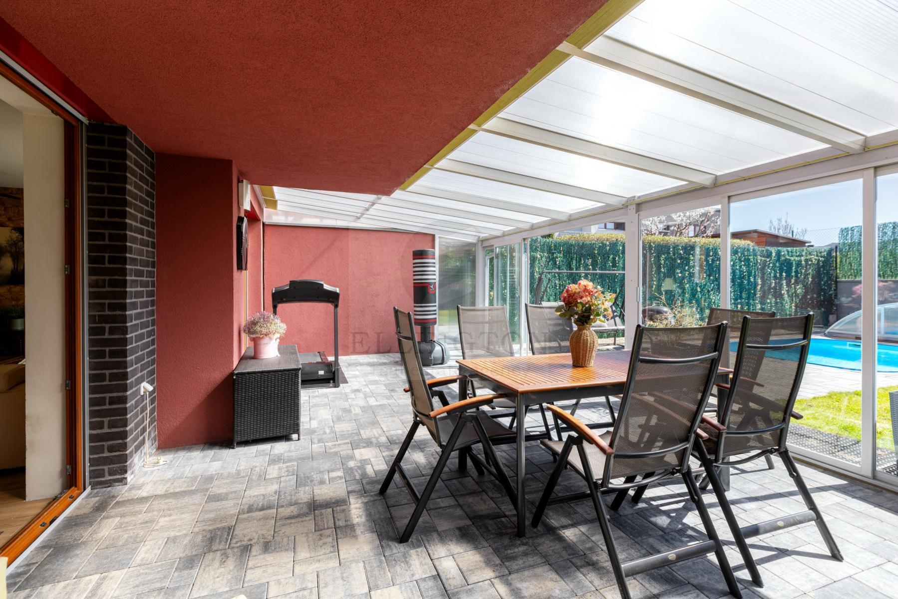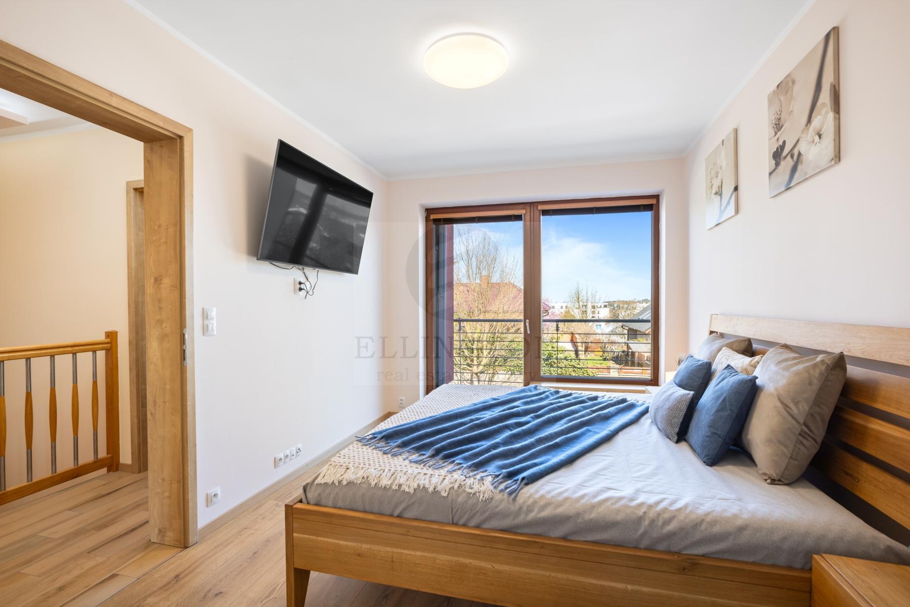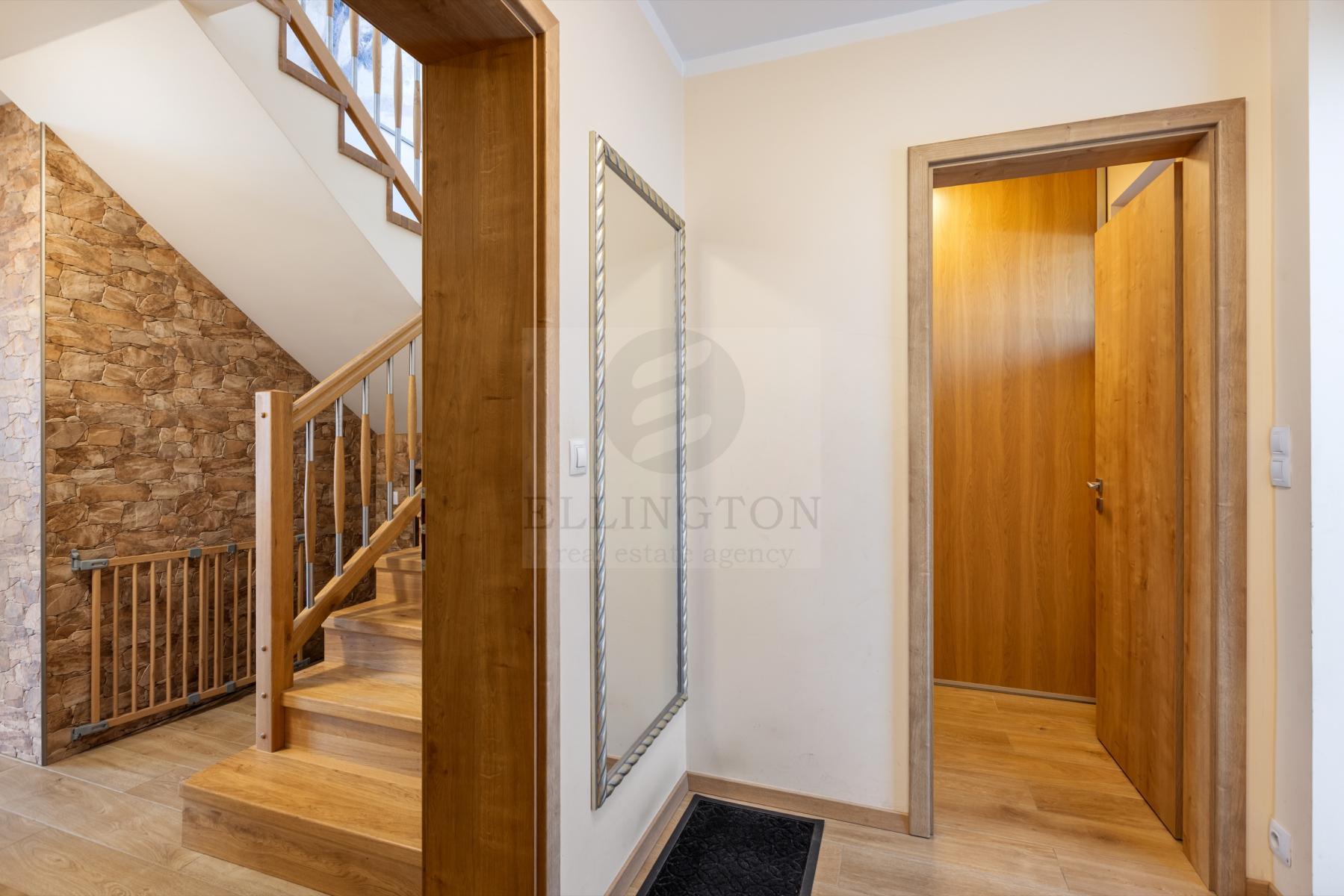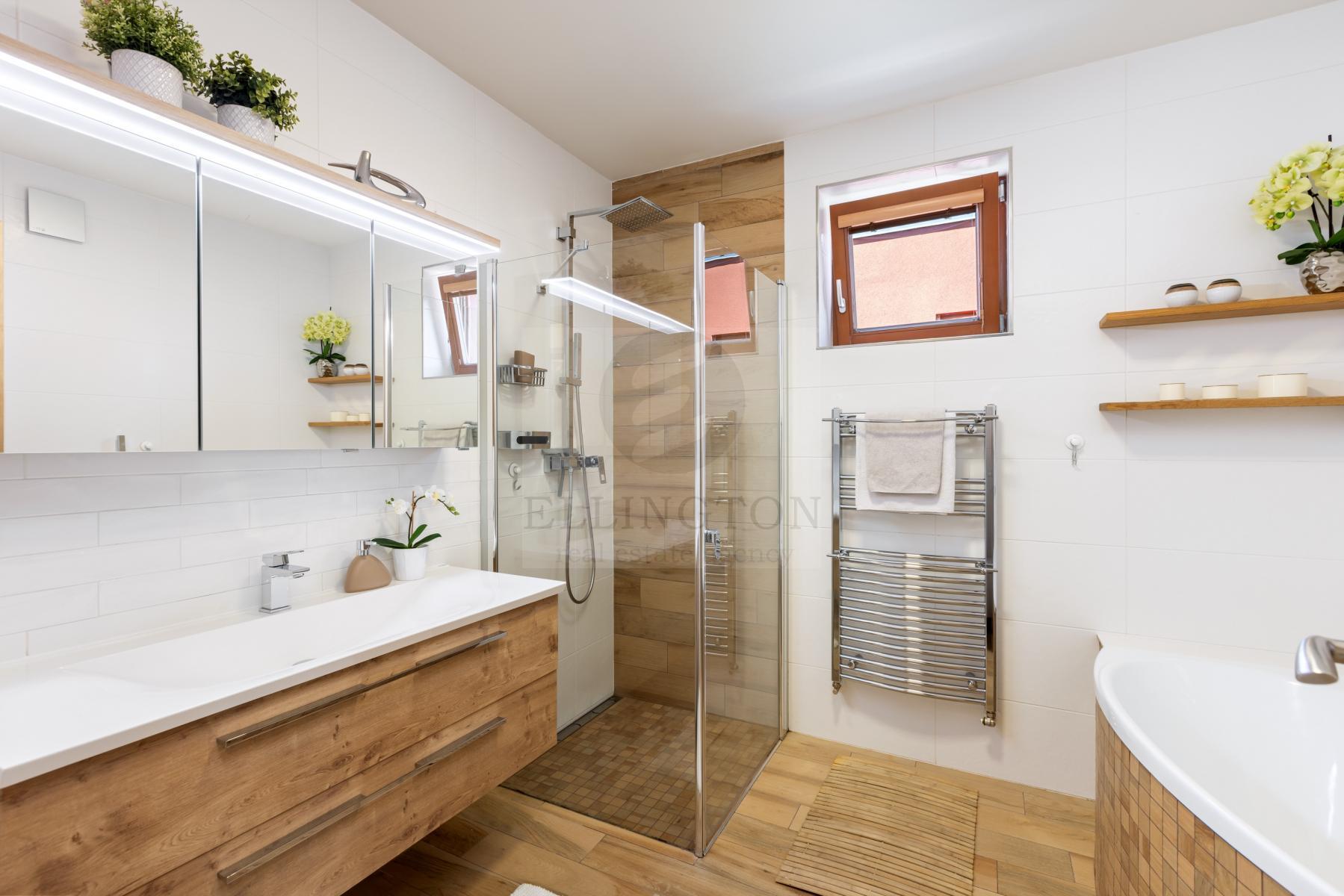 Nabízíme prodej rodinného domu 5+kk na Praze- západ město Roztoky, které se pyšní nejen krásnou přírodní rezervací Tiché údolí, ale i také kompletní občanskou vybaveností včetně škol a školek a přesto kousek od Prahy. Jedná se o novostavbu 5+kk s garáží kolaudovanou v roce 2018 o celkové rozloze 163m2 + 4m2 balkon u ložnice a 8m2 terasy u druhé. Dům stojí na pozemku 381m2. V přízemí domu se nachází zádveří z kterého se vchází do šatny z vest. skříní také samostatná toaleta , technická místnost, infra sauna se sprchovým koutem, která je umístěna v garáži. Dále se vchází do obývacího pokoje s přípravou na krb a plně vybavenou kuchyní spojují s terasou a soukromou zahradou s velkoformátovými okny. Patra spojují masivní dřevěné schodiště se stejném stylu jako jsou parapety a zárubně dveří. V první podlaží se nachází 4 ložnice, z nichž dvě mají vlastní vstup na terasu s výhledem do zahrady. V celém domě byli použity nadstandardní prvky včetně sanity, kompletně zařízený kvalitním nábytkem na míru (lze prodávat i nezařízený). Soukromí horního podlaží doplňuje koupelna s vyhřívanou podlahou (toaleta, vana, sprchový kout) a samostatná toaleta, vše vybaveno sanita Grohe. V přízemí je položena luxusní dlažba Marazzi, v celém domě jsou sádrové omítky, podhledy a všechna okna disponují venkovními žaluziemi na ovládání a sítěmi proti hmyzu. Vytápění domu je řešeno plynovým kotlem Protherm a podlahovými konvektory v kombinaci s s radiátory. Garáž a vstupní brána jsou na dálkové ovládání a bezpečnost celého domu zajišťuje alarm. Zahradní bazén se slanou vodou (4x3 m) a protiproudem na automatické ovládání doplňuje zastřešená terasa, hliníková pergola s plisé roletkami, trávníkový koberec s automatickým zavlažováním a zahradní domek. Velmi pěkné bydlení které vnese do života soukromí a výjimečný komfort. Možnost hradit i hypotečním úvěrem s kterým vám i velice rádi pomůžeme. Vzhledem k lokalitě tuto nabídku doporučujeme. Nutno vidět.