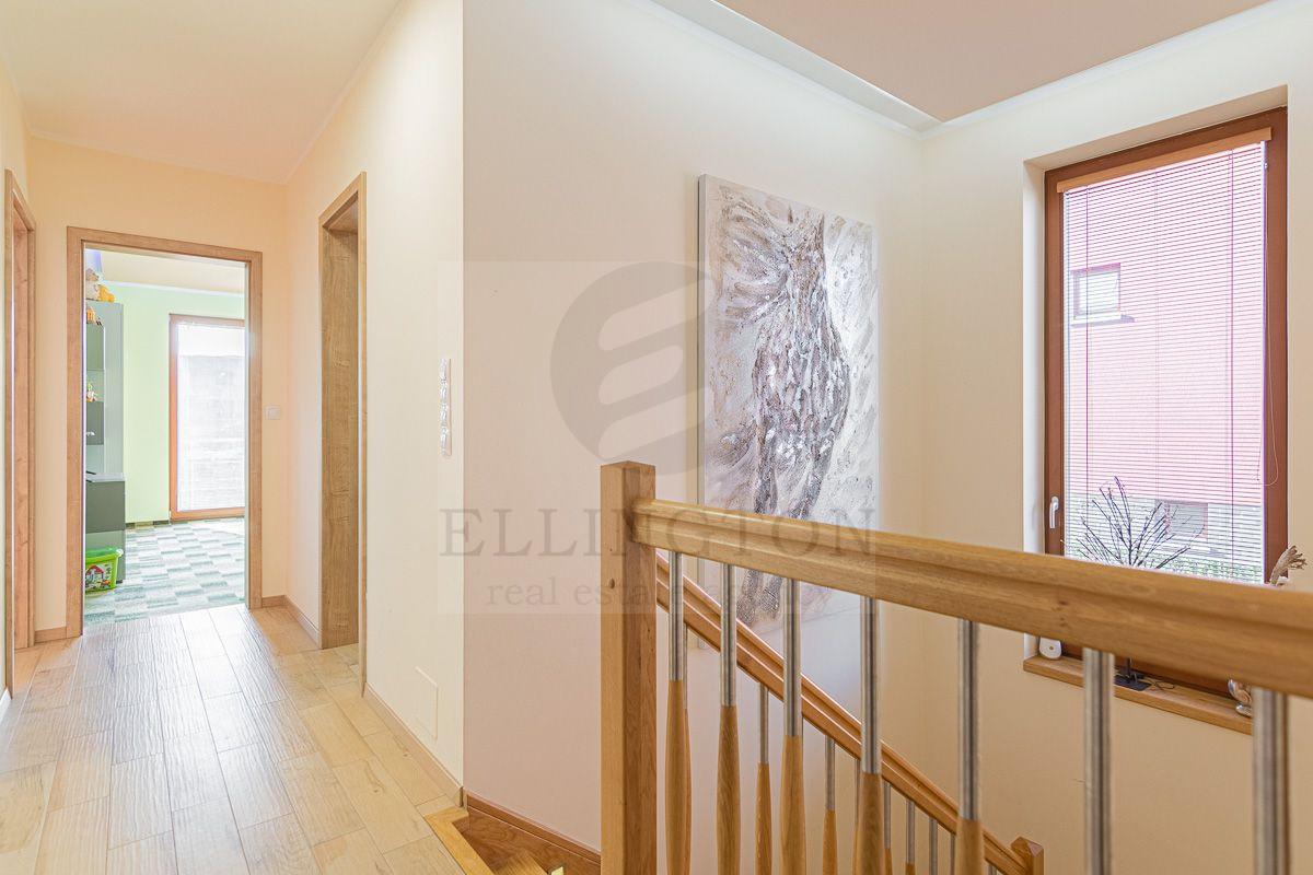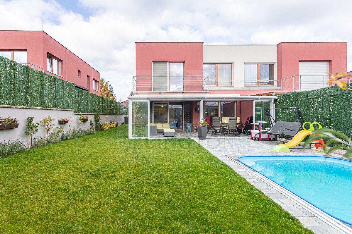AKČNÍ NABÍDKA CENY do 15.4.2026 !!! Nabízíme prodej rodinného domu 5+kk na Praze- západ město Roztoky, které se pyšní nejen krásnou přírodní rezervací Tiché údolí, ale i také kompletní občanskou vybaveností včetně škol a školek a přesto kousek od Prahy. Jedná se o novostavbu 5+kk s garáží kolaudovanou v roce 2018 o celkové rozloze 162m2 na pozemku 381m2. V přízemí domu se nachází zádveří z kterého se vchází do šatny z vest. skříní také samostatná toaleta , technická místnost, infra sauna se sprchovým koutem, která je umístěna v garáži. Dále se vchází do obývacího pokoje s přípravou na krb a plně vybavenou kuchyní spojují s terasou a soukromou zahradou s velkoformátovými okny. Patra spojují masivní dřevěné schodiště se stejném stylu jako jsou parapety a zárubně dveří. V první podlaží se nachází 4 ložnice, z nichž dvě mají vlastní vstup na terasu s výhledem do zahrady. V celém domě byli použity nadstandardní prvky včetně sanity, kompletně zařízený kvalitním nábytkem na míru (lze prodávat i nezařízený). Soukromí horního podlaží doplňuje koupelna s vyhřívanou podlahou (toaleta, vana, sprchový kout) a samostatná toaleta, vše vybaveno sanita Grohe. V přízemí je položena luxusní dlažba Marazzi, v celém domě jsou sádrové omítky, podhledy a všechna okna disponují venkovními žaluziemi na ovládání a sítěmi proti hmyzu. Vytápění domu je řešeno plynovým kotlem Protherm a podlahovými konvektory v kombinaci s s radiátory. Garáž a vstupní brána jsou na dálkové ovládání a bezpečnost celého domu zajišťuje alarm. Zahradní bazén se slanou vodou (4x3 m) a protiproudem na automatické ovládání doplňuje zastřešená terasa, hliníková pergola s plisé roletkami, trávníkový koberec s automatickým zavlažováním a zahradní domek. Velmi pěkné bydlení které vnese do života soukromí a výjimečný komfort. Možnost hradit i hypotečním úvěrem s kterým vám i velice rádi pomůžeme. Vzhledem k lokalitě tuto nabídku doporučujeme. Nutno vidět.