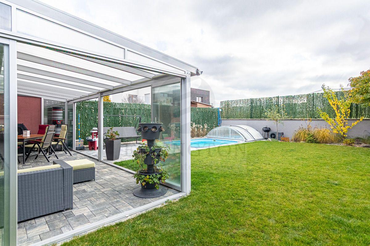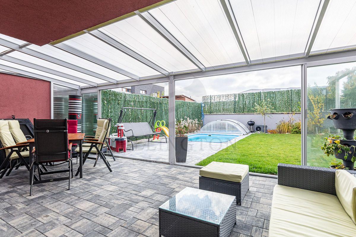 AKČNÍ NABÍDKA CENY do 15.4.2026 !!! Nabízíme prodej rodinného domu 5+kk na Praze- západ město Roztoky, které se pyšní nejen krásnou přírodní rezervací Tiché údolí, ale i také kompletní občanskou vybaveností včetně škol a školek a přesto kousek od Prahy. Jedná se o novostavbu 5+kk s garáží kolaudovanou v roce 2018 o celkové rozloze 162m2 na pozemku 381m2. V přízemí domu se nachází zádveří z kterého se vchází do šatny z vest. skříní také samostatná toaleta , technická místnost, infra sauna se sprchovým koutem, která je umístěna v garáži. Dále se vchází do obývacího pokoje s přípravou na krb a plně vybavenou kuchyní spojují s terasou a soukromou zahradou s velkoformátovými okny. Patra spojují masivní dřevěné schodiště se stejném stylu jako jsou parapety a zárubně dveří. V první podlaží se nachází 4 ložnice, z nichž dvě mají vlastní vstup na terasu s výhledem do zahrady. V celém domě byli použity nadstandardní prvky včetně sanity, kompletně zařízený kvalitním nábytkem na míru (lze prodávat i nezařízený). Soukromí horního podlaží doplňuje koupelna s vyhřívanou podlahou (toaleta, vana, sprchový kout) a samostatná toaleta, vše vybaveno sanita Grohe. V přízemí je položena luxusní dlažba Marazzi, v celém domě jsou sádrové omítky, podhledy a všechna okna disponují venkovními žaluziemi na ovládání a sítěmi proti hmyzu. Vytápění domu je řešeno plynovým kotlem Protherm a podlahovými konvektory v kombinaci s s radiátory. Garáž a vstupní brána jsou na dálkové ovládání a bezpečnost celého domu zajišťuje alarm. Zahradní bazén se slanou vodou (4x3 m) a protiproudem na automatické ovládání doplňuje zastřešená terasa, hliníková pergola s plisé roletkami, trávníkový koberec s automatickým zavlažováním a zahradní domek. Velmi pěkné bydlení které vnese do života soukromí a výjimečný komfort. Možnost hradit i hypotečním úvěrem s kterým vám i velice rádi pomůžeme. Vzhledem k lokalitě tuto nabídku doporučujeme. Nutno vidět.