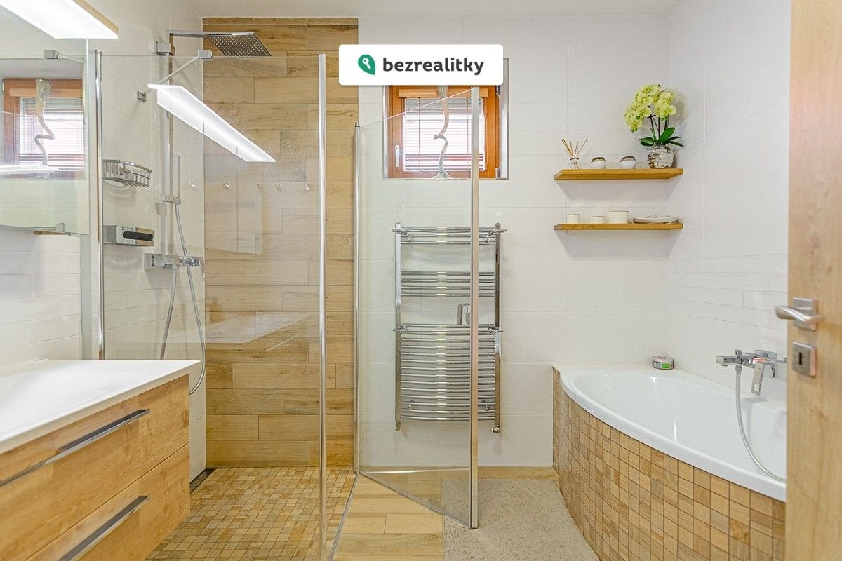 Nabízíme prodej rodinného domu 5+kk na Praze- západ město Roztoky, které se pyšní nejen krásnou přírodní rezervací Tiché údolí, ale i také kompletní občanskou vybaveností včetně škol a školek a přesto kousek od Prahy. Jedná se o novostavbu 5+kk s garáží kolaudovanou v roce 2018 o celkové rozloze 162m2 na pozemku 381m2. V přízemí domu se nachází zádveří z kterého se vchází do šatny z vest. skříní také samostatná toaleta , technická místnost, infra sauna se sprchovým koutem, která je umístěna v garáži. Dále se vchází do obývacího pokoje s přípravou na krb a plně vybavenou kuchyní spojují s terasou a soukromou zahradou s velkoformátovými okny. Patra spojují masivní dřevěné schodiště se stejném stylu jako jsou parapety a zárubně dveří. V první podlaží se nachází 4 ložnice, z nichž dvě mají vlastní vstup na terasu s výhledem do zahrady. V celém domě byli použity nadstandardní prvky včetně sanity, kompletně zařízený kvalitním nábytkem na míru (lze prodávat i nezařízený). Soukromí horního podlaží doplňuje koupelna s vyhřívanou podlahou (toaleta, vana, sprchový kout) a samostatná toaleta, vše vybaveno sanita Grohe. V přízemí je položena luxusní dlažba Marazzi, v celém domě jsou sádrové omítky, podhledy a všechna okna disponují venkovními žaluziemi na ovládání a sítěmi proti hmyzu. Vytápění domu je řešeno plynovým kotlem Protherm a podlahovými konvektory v kombinaci s s radiátory. Garáž a vstupní brána jsou na dálkové ovládání a bezpečnost celého domu zajišťuje alarm. Zahradní bazén se slanou vodou (4x3 m) a protiproudem na automatické ovládání doplňuje zastřešená terasa, hliníková pergola s plisé roletkami, trávníkový koberec s automatickým zavlažováním a zahradní domek. Velmi pěkné bydlení které vnese do života soukromí a výjimečný komfort. Tato nemovitost je určena výhradně přímým zájemcům o koupi. Na inzerát můžete také reagovat přímo na webu Bezrealitky.