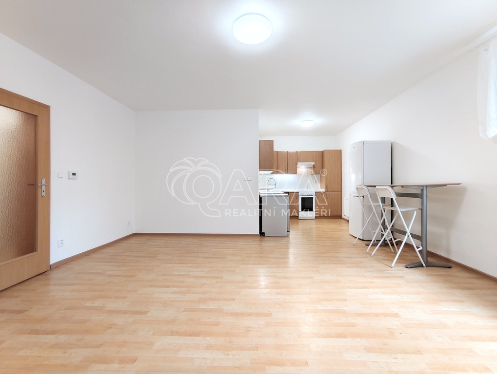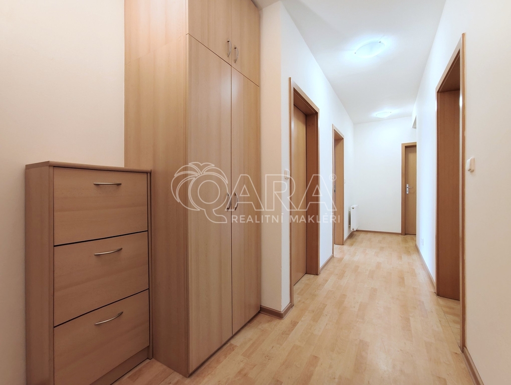 Tento byt má výborně řešenou dispozici danou dvěma neprůchozími ložnicemi vybavenými šikovně vestavěnými šatními skříněmi a samostatný prostorný obývací pokoj s navazujícím kuchyňským koutem. Ten je vybaven kuchyňskou linkou, ve které nechybí ani chladnička s mrazničkou a myčka nádobí. Koupelna disponuje širokým walk-in sprchovým koutem, WC je umístěno samostatně. Součásti vybavení je rovněž pračka.