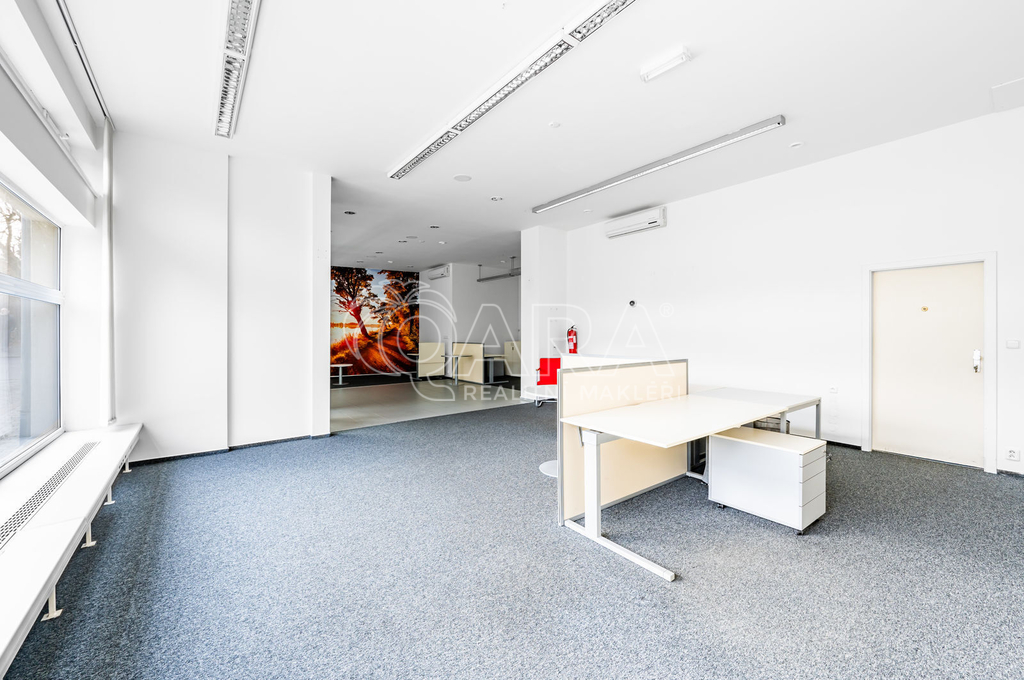 Pronájem obchodních prostor o rozloze 143 m2 v centru Roztok u Prahy. Tyto moderní prostory se nacházejí v přízemí bytového domu na frekventované ulici, což zajišťuje vysokou viditelnost a snadnou dostupnost.